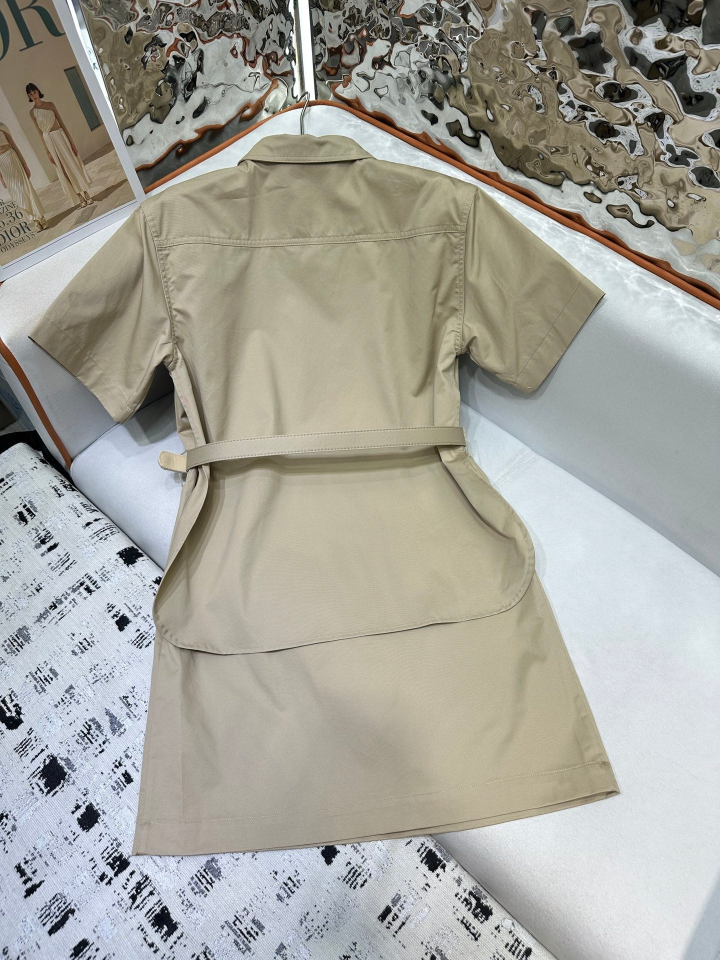 Fendi 25 Short-sleeved Dress Beige Cotton