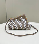 FENDI 26 FIRST SMALL IN TAN BROWN MIX WHITE CALFSKIN SILVER HARDWARE