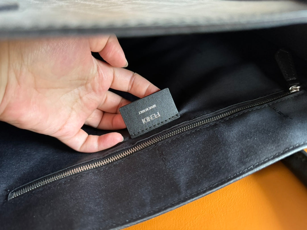 FENDI 38 BAG FF MONOGRAM FF BLACK CALFSKIN WITH STRAP