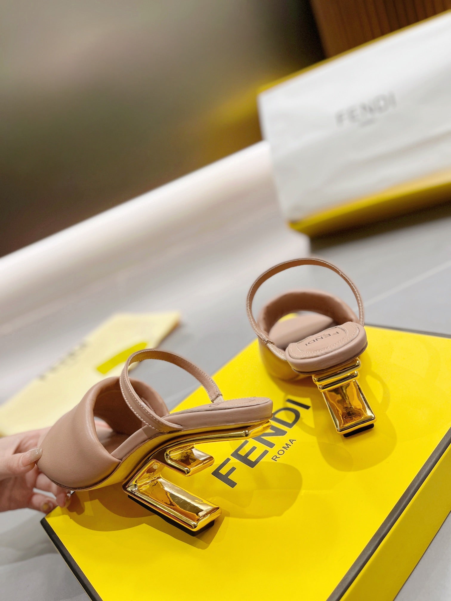 FENDI BAGUETTE HIGH-HEEL SANDALS 8 CM IN CAMEL BROWN CALFSKIN