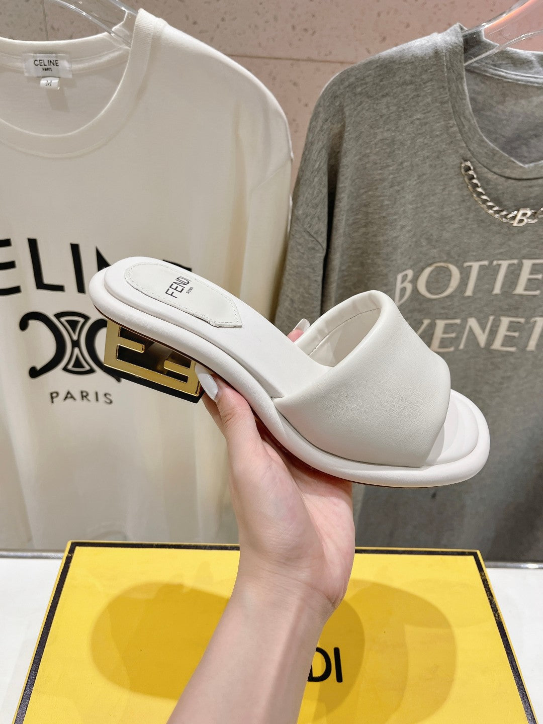 FENDI BAGUETTE MEDIUM-HEEL SANDALS 45 MM IN WHITE CALFSKIN