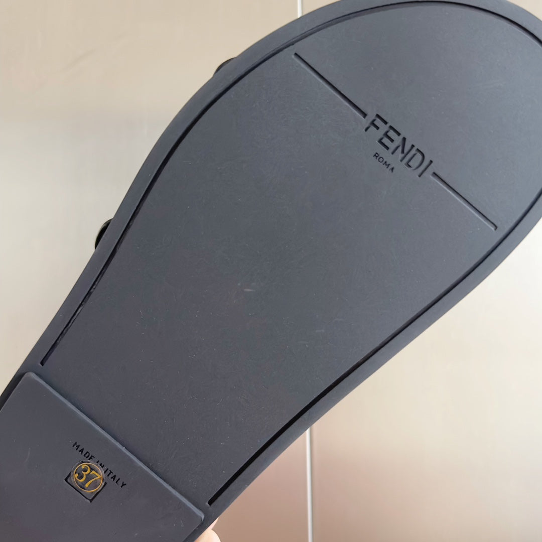 FENDI DAD SANDAL IN MOCHA BROWN MIX BLACK MONOGRAM JACQUARD FABRIC