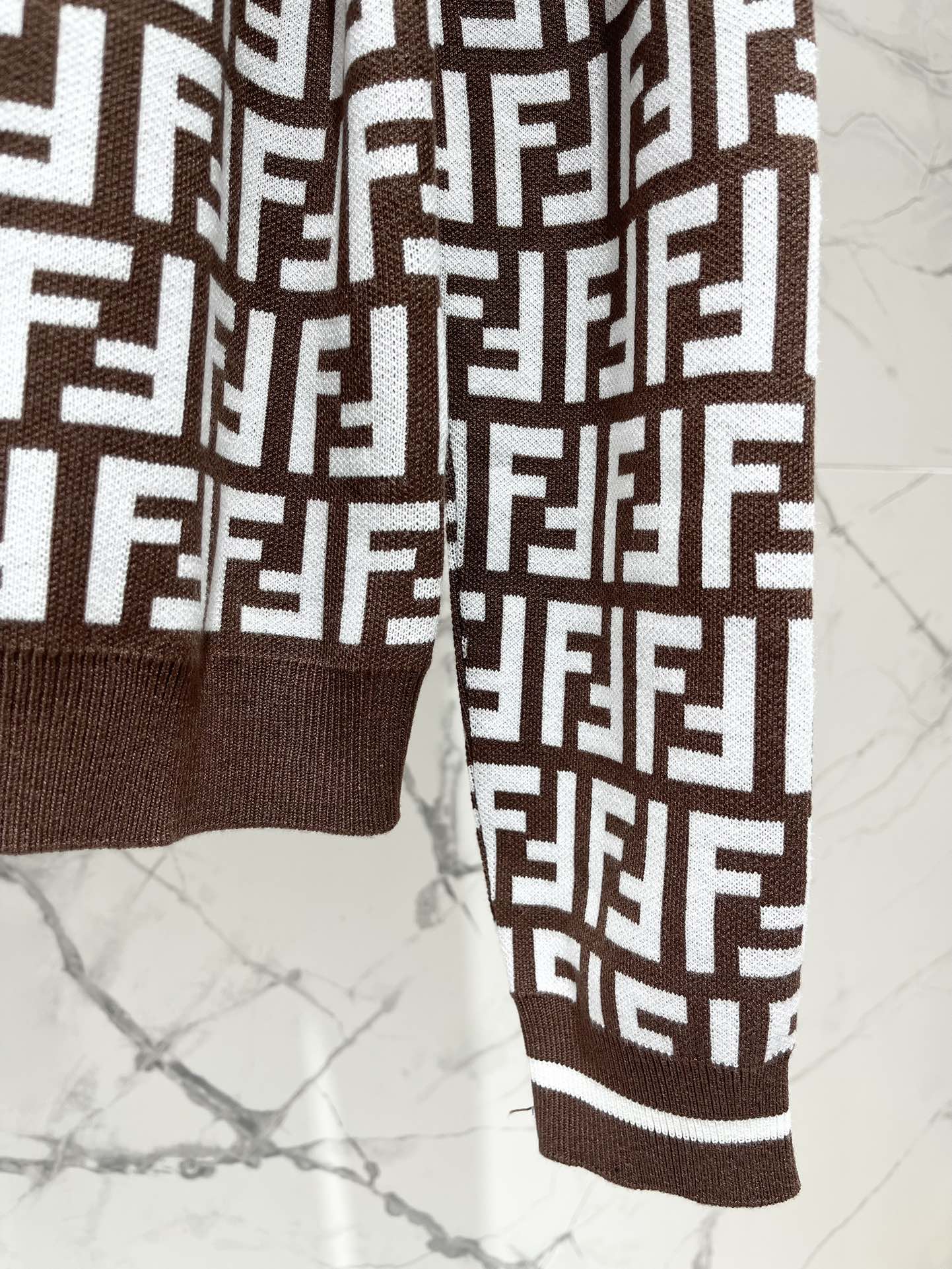 Fendi Double f Letter Knitted Cardigan Brown Wool