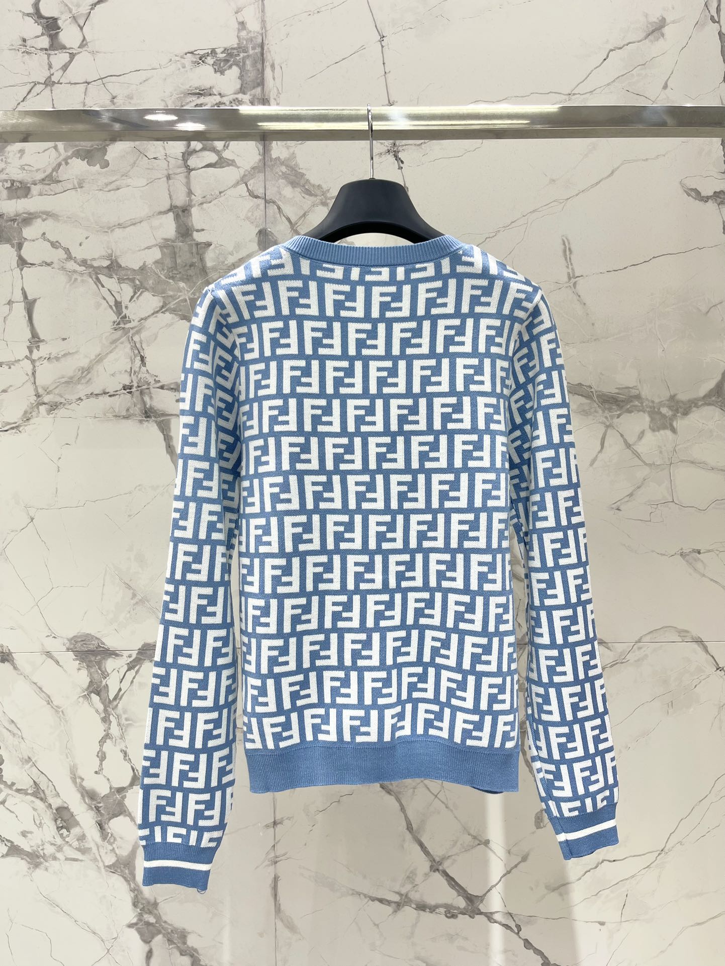 Fendi Double f Letter Knitted Cardigan Steel Blue Wool