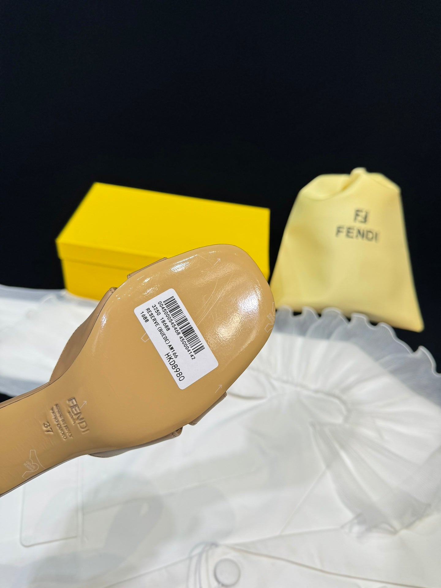 FENDI MEDIUM-HEELED 55 MM MULE IN BRONZE BROWN LAMBSKIN WITH GOLD HARDWARE