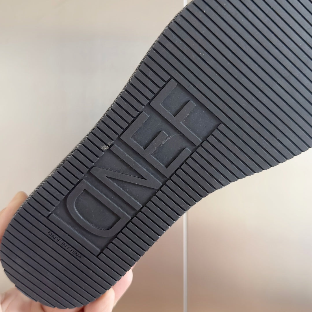 FENDI PLATFORM WEDGES IN BLACK JACUARD FABRIC WITH BLACK EMBROIDERED LOGO