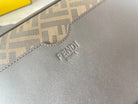 FENDI ROMA 22 CLUTCH BAG IN CHOCOLATE BROWN FF CALFSKIN SILVER HARDWARE WITH GOLDEN LOGO