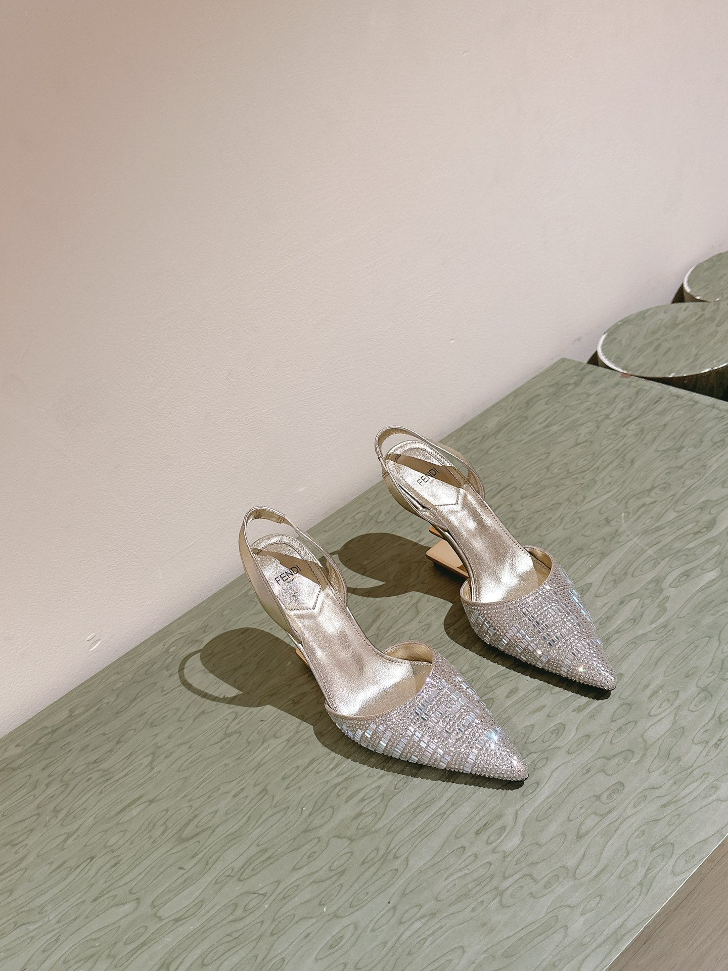 FENDI SEQUINS HIGH-HEELED SLINGBACK 85MM GOLD