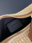 FENDIGRAPHY MINI 16 IN BEIGE STRAW AND BROWN CALFSKIN TRIM GOLD HARDWARE
