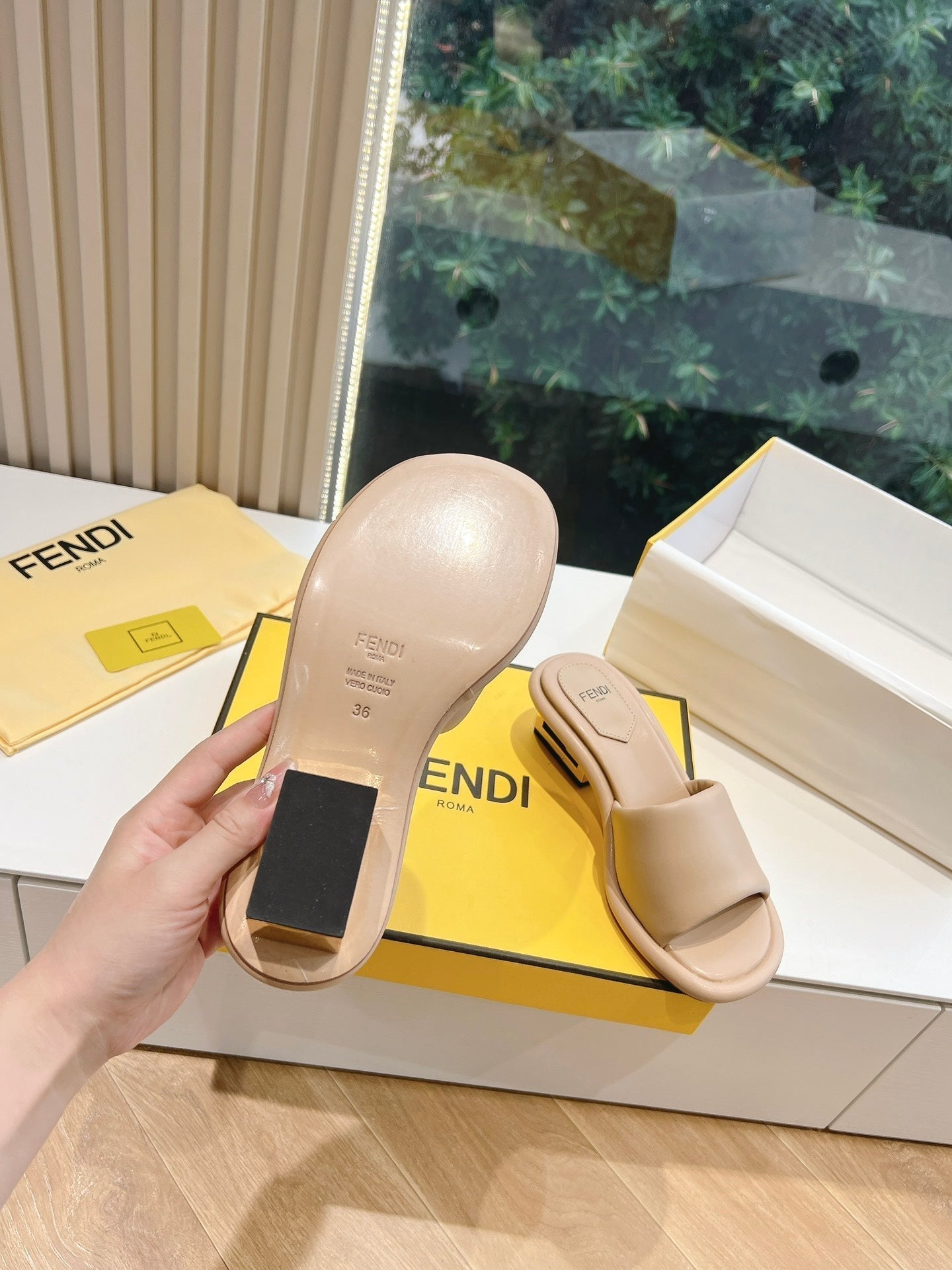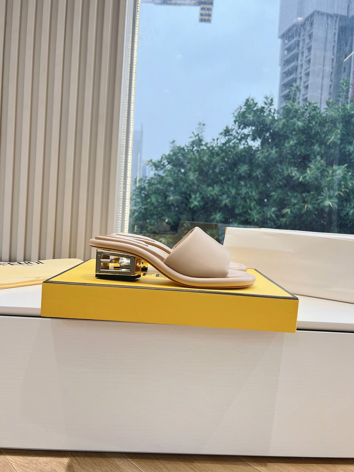 FF Baguette Slides Women 45 Nappa Leather Beige