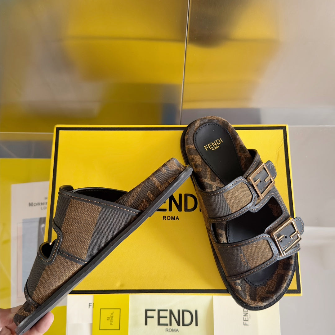 FF Feel Brown Black Canvas Slide