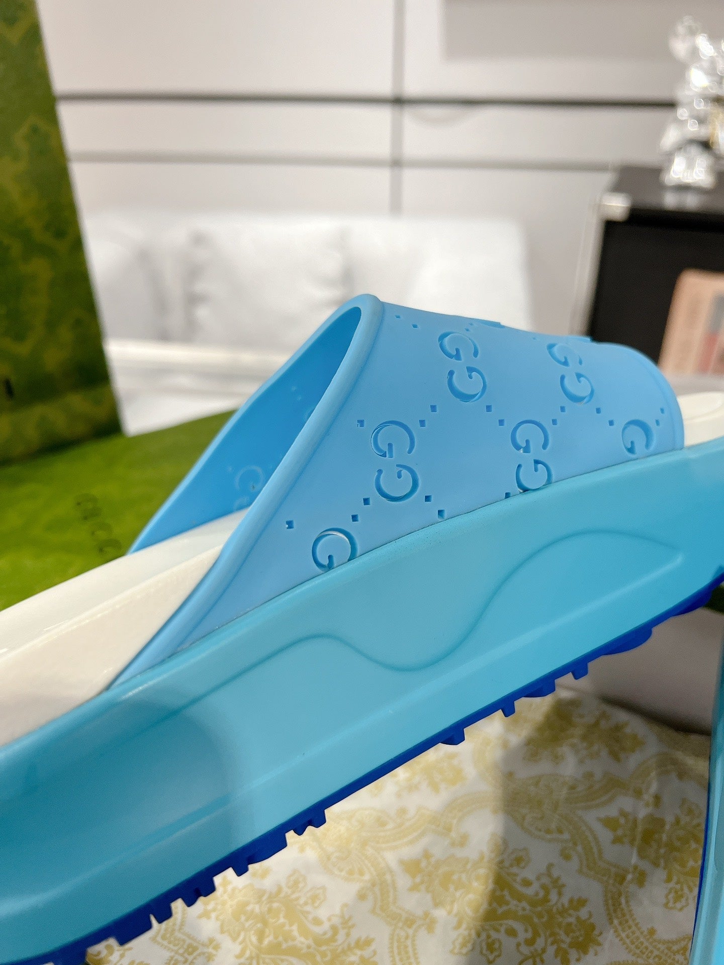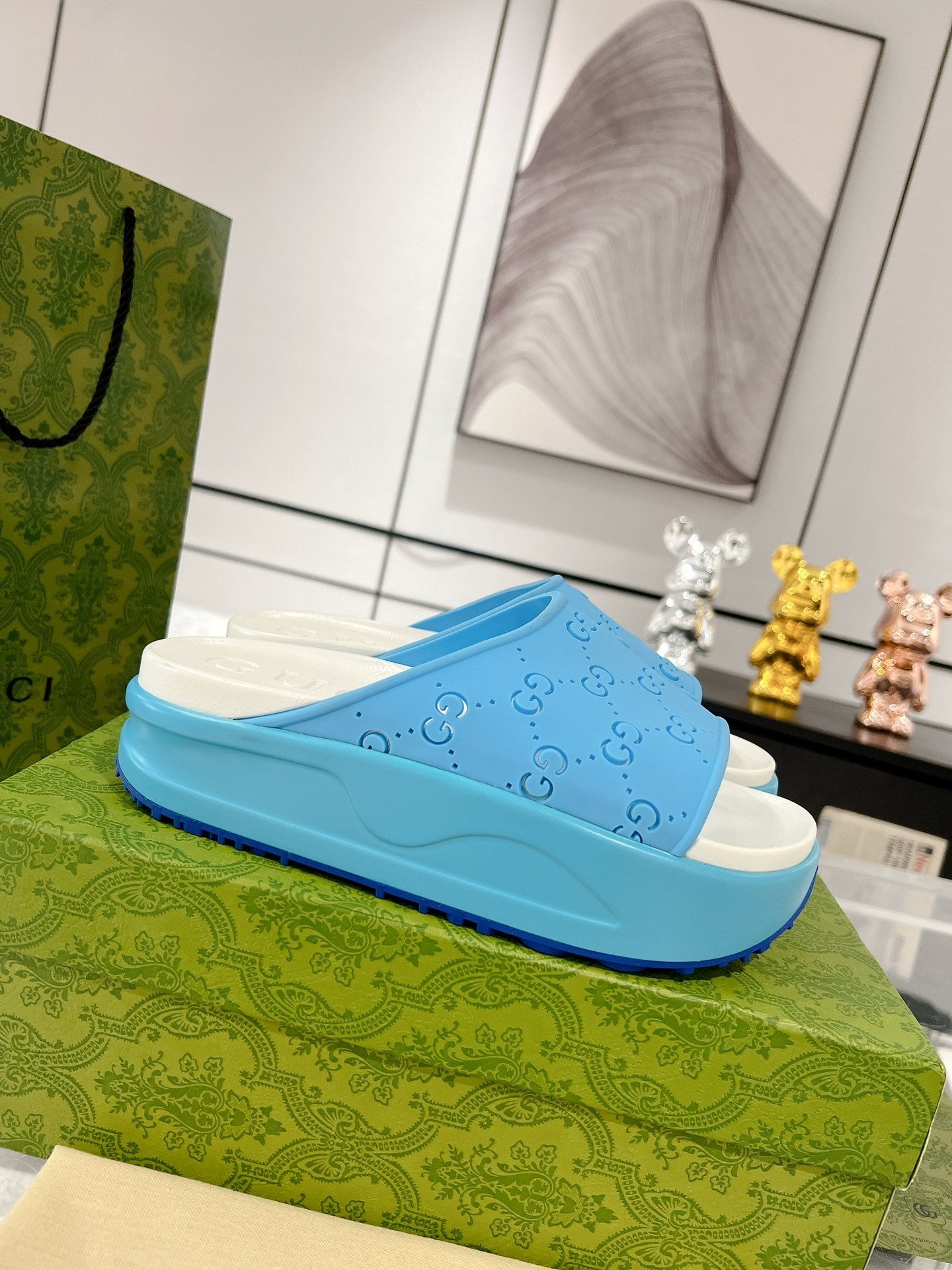 GC 25 50mm Monogram Slide Sandal Sky Blue White Cowhide 292392
