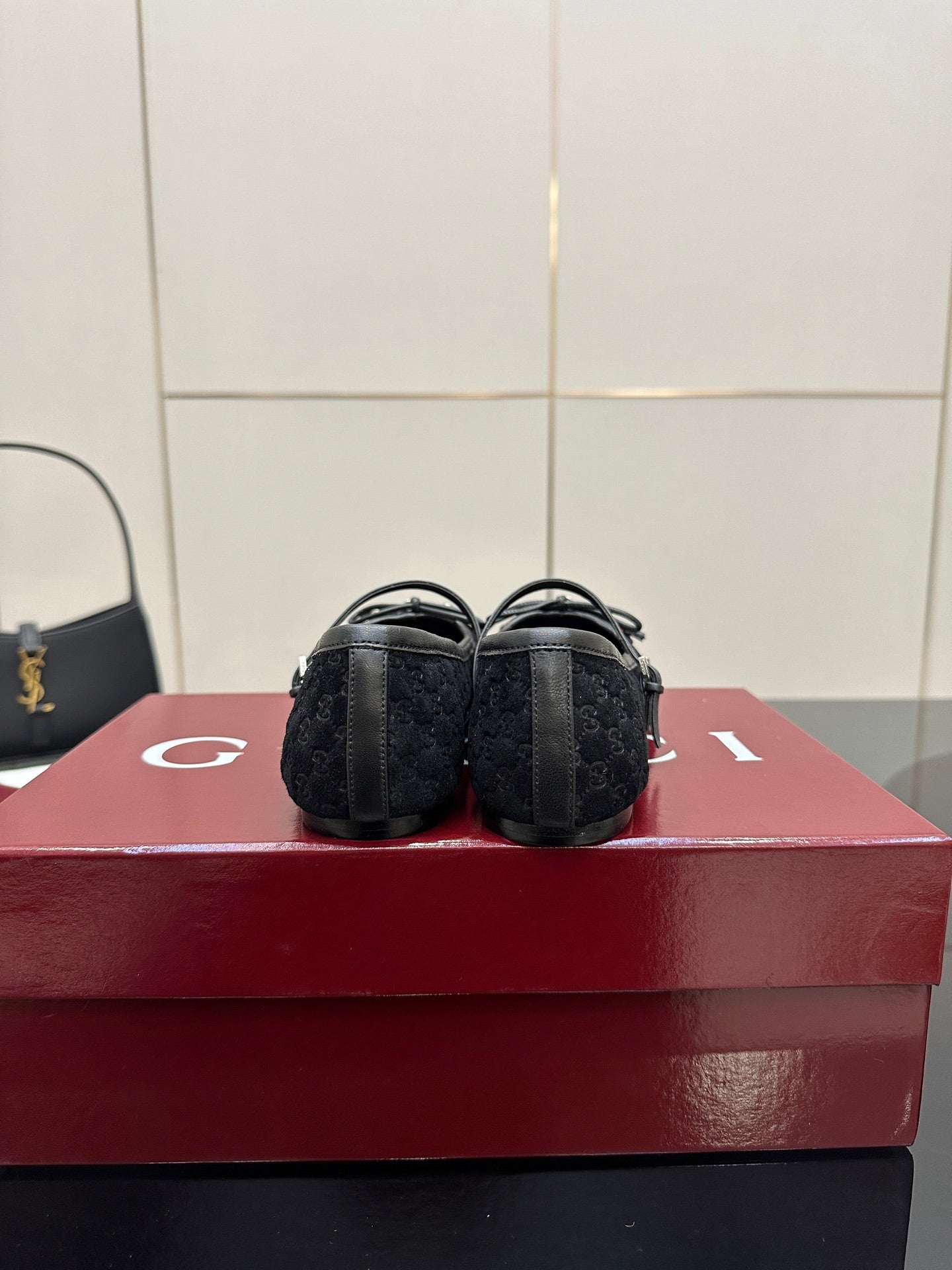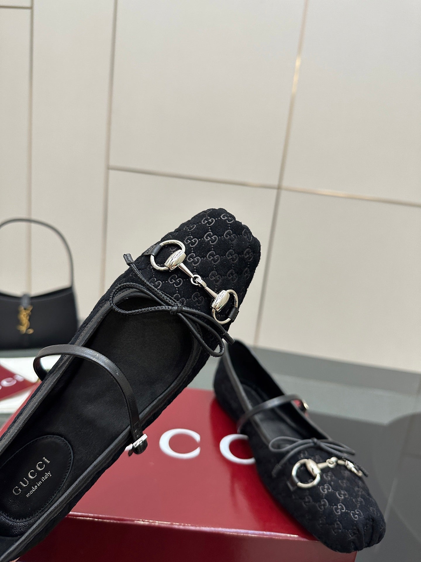 GC 25 Horsebit Ballet Flat Black Monogram Suede