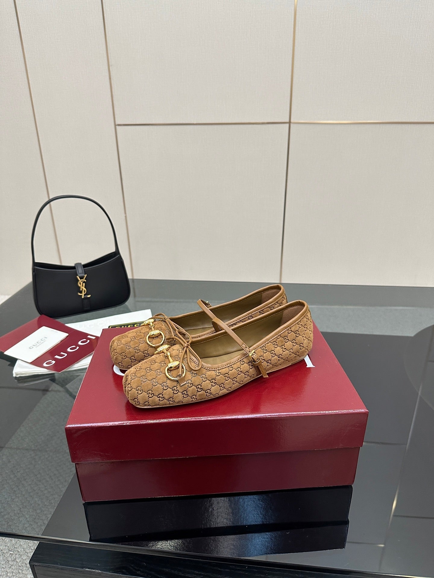 GC 25 Horsebit Ballet Flat Dark Brown Monogram Suede