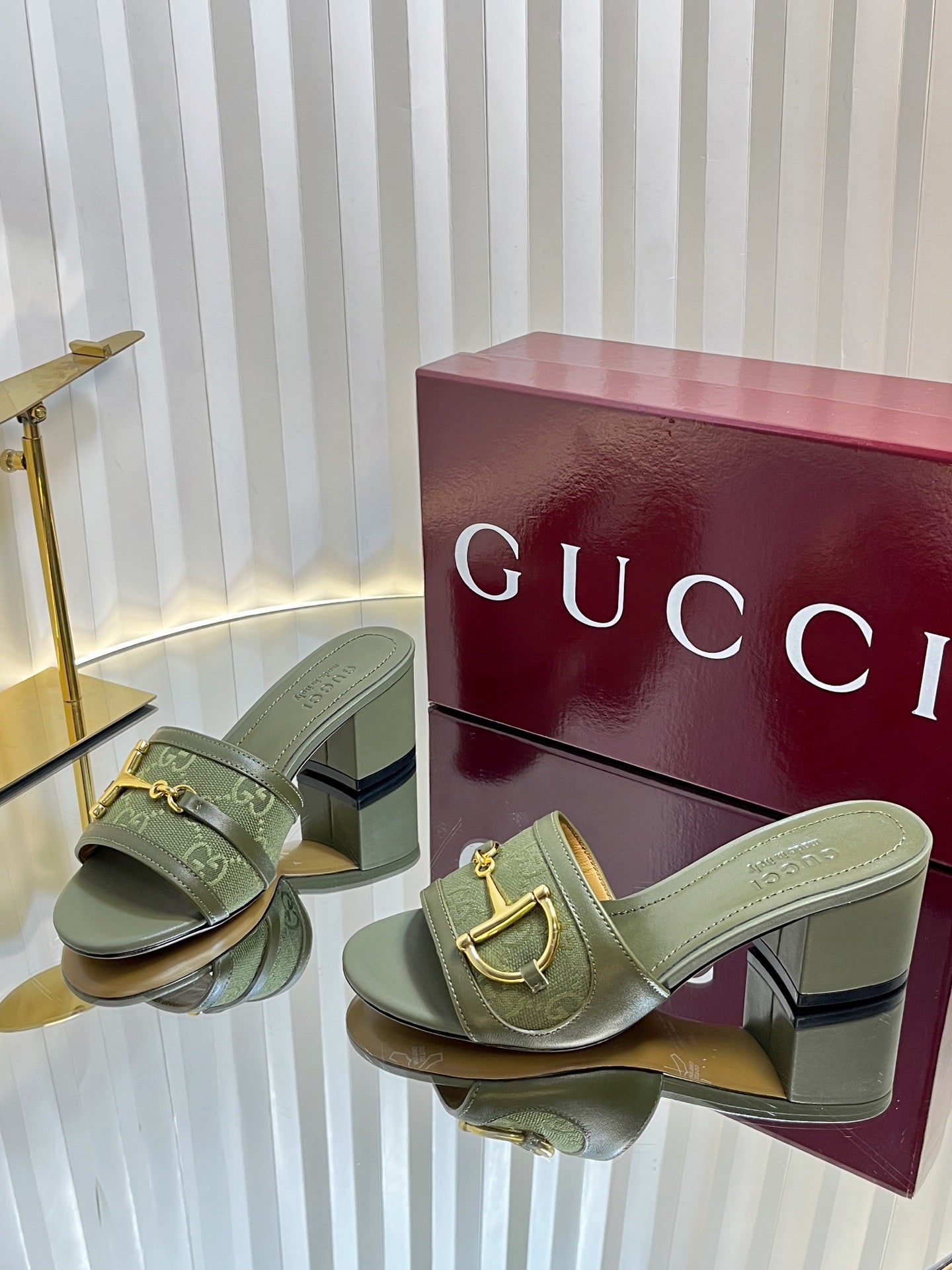 GC 25 Horsebit GG 50mm Sandals Dark Green Canvas 294679