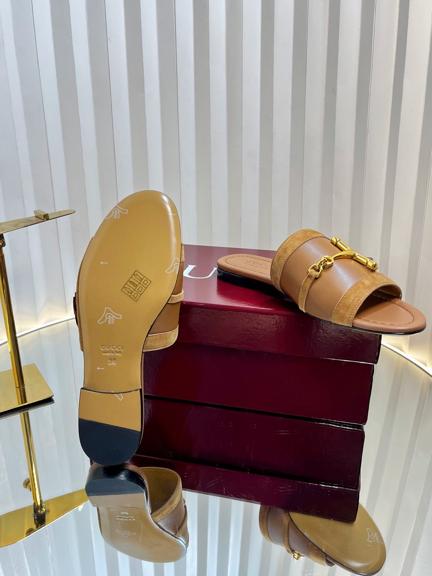 GC 25 Horsebit Sandals 10mm Brown Suede Sheepskin 294650
