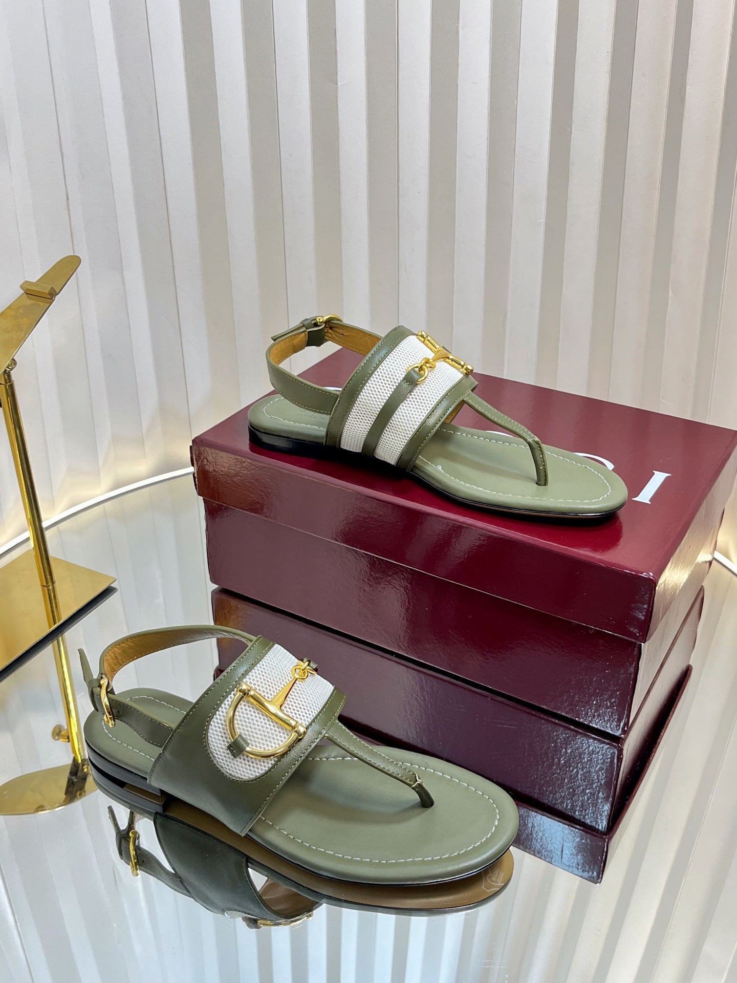GC 25 Thong Sandal Dark Green Canvas Sheepskin 294671