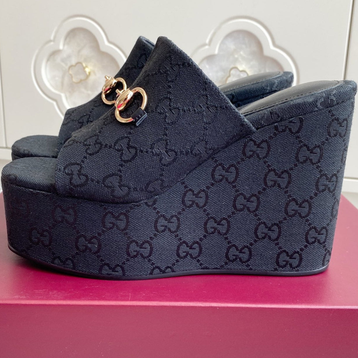 GC 25 Wedge With Horsebit Sandal Black Canvas 291030