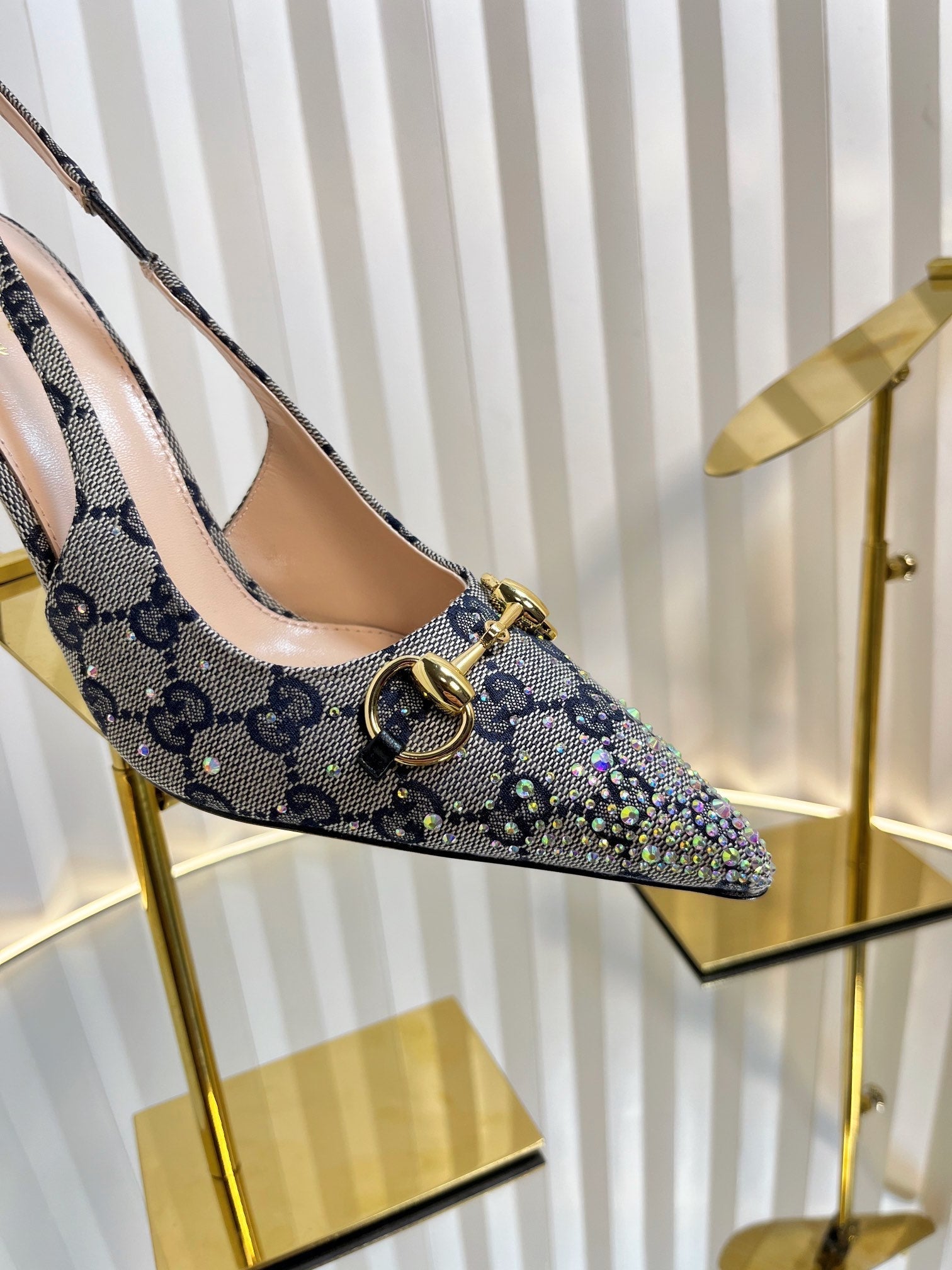 GC Crystal Horsebit Slingback 100mm Beige mix Blue Canvas lambskin 294619