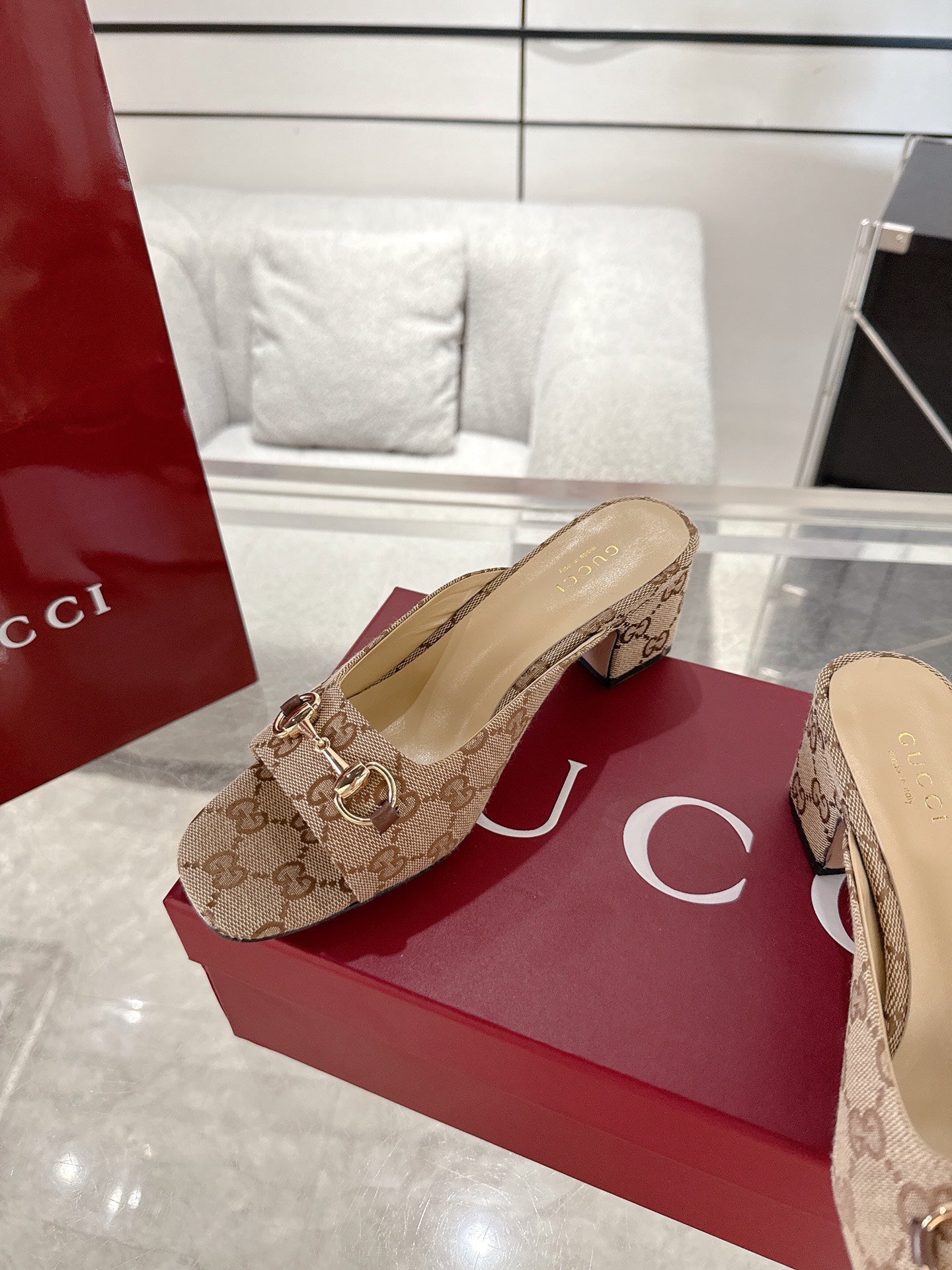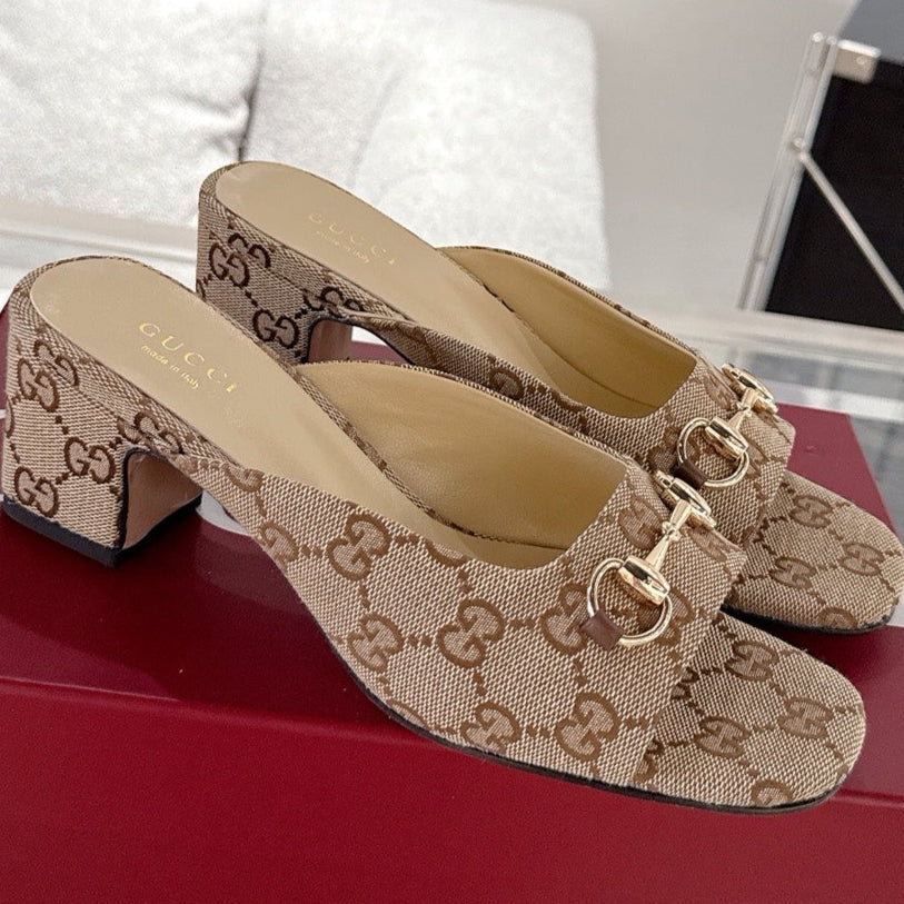 GC Horsebit Slide Brown Canvas Cowhide 292406