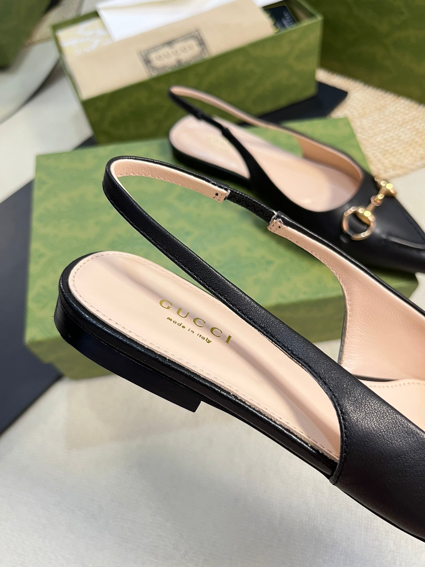 GC Horsebit Slingback Pump 10mm Black Sheepskin 294557