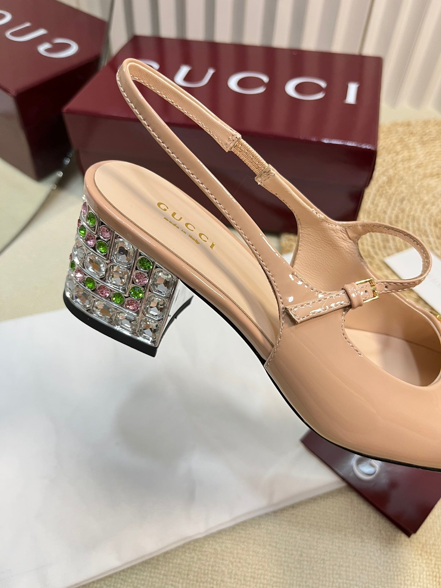 GC Horsebit Slingback with Crystal 65mm Rose Beige Patent Leather 294601