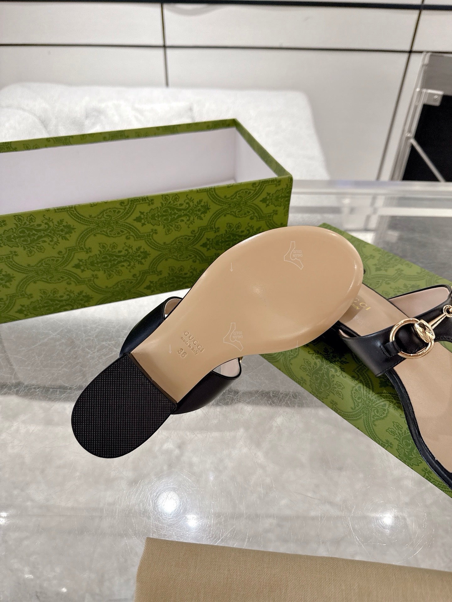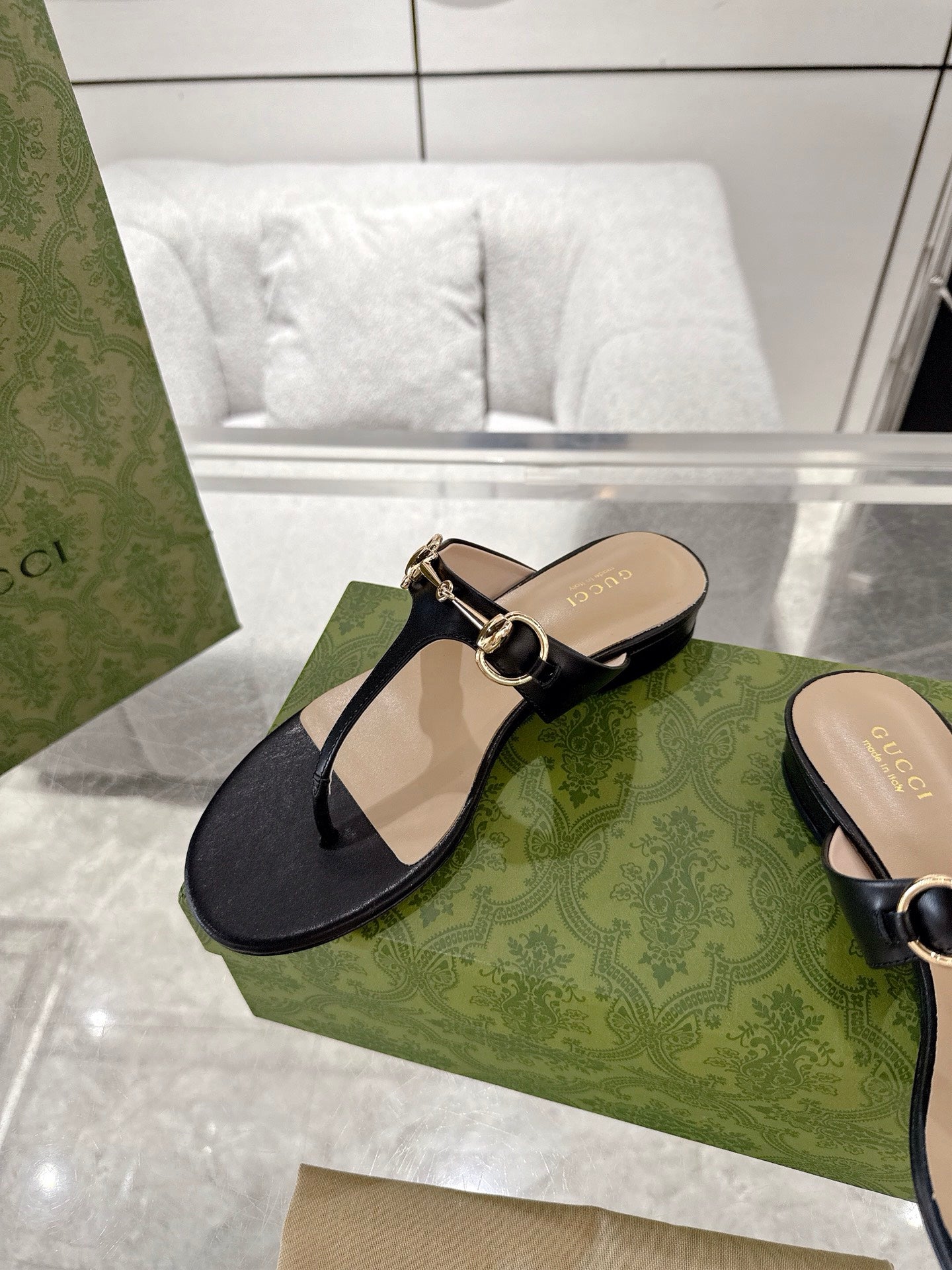 GC Horsebit Thong Sandals Black Leather 292477