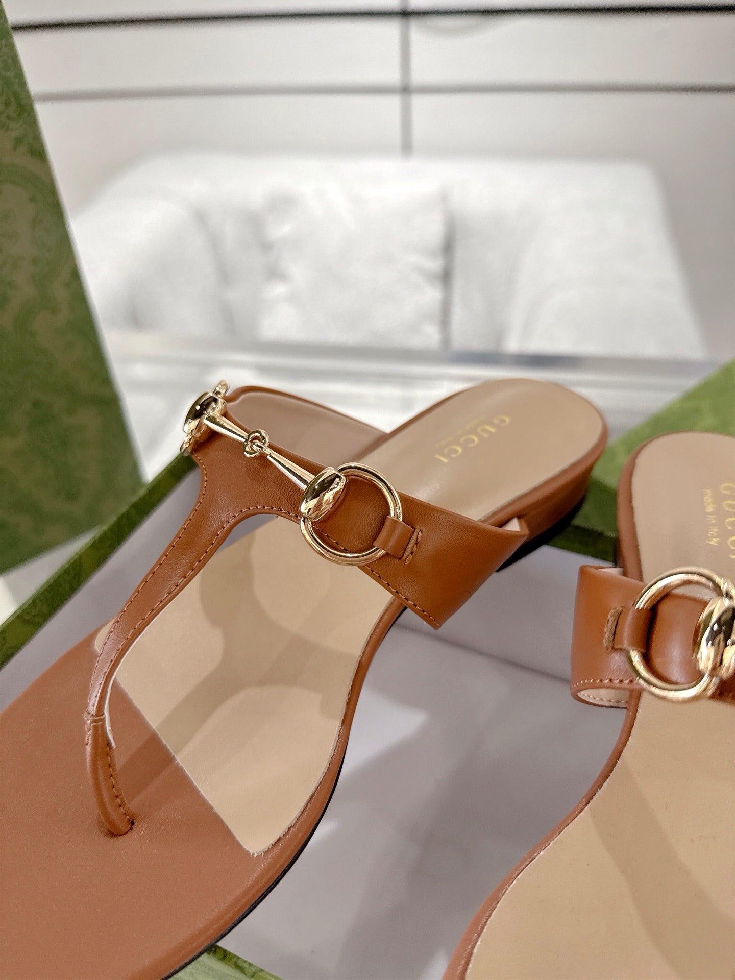 GC Horsebit Thong Sandals Brown Leather 292478