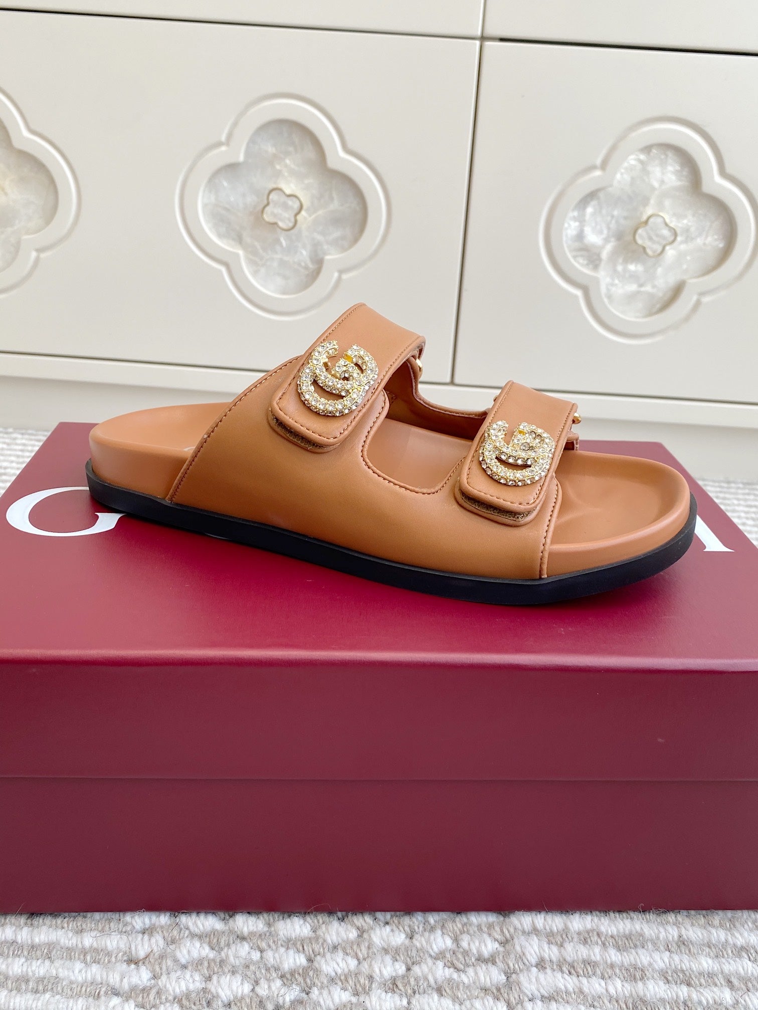 GC sandal with Double G Brown Calfskin 291024