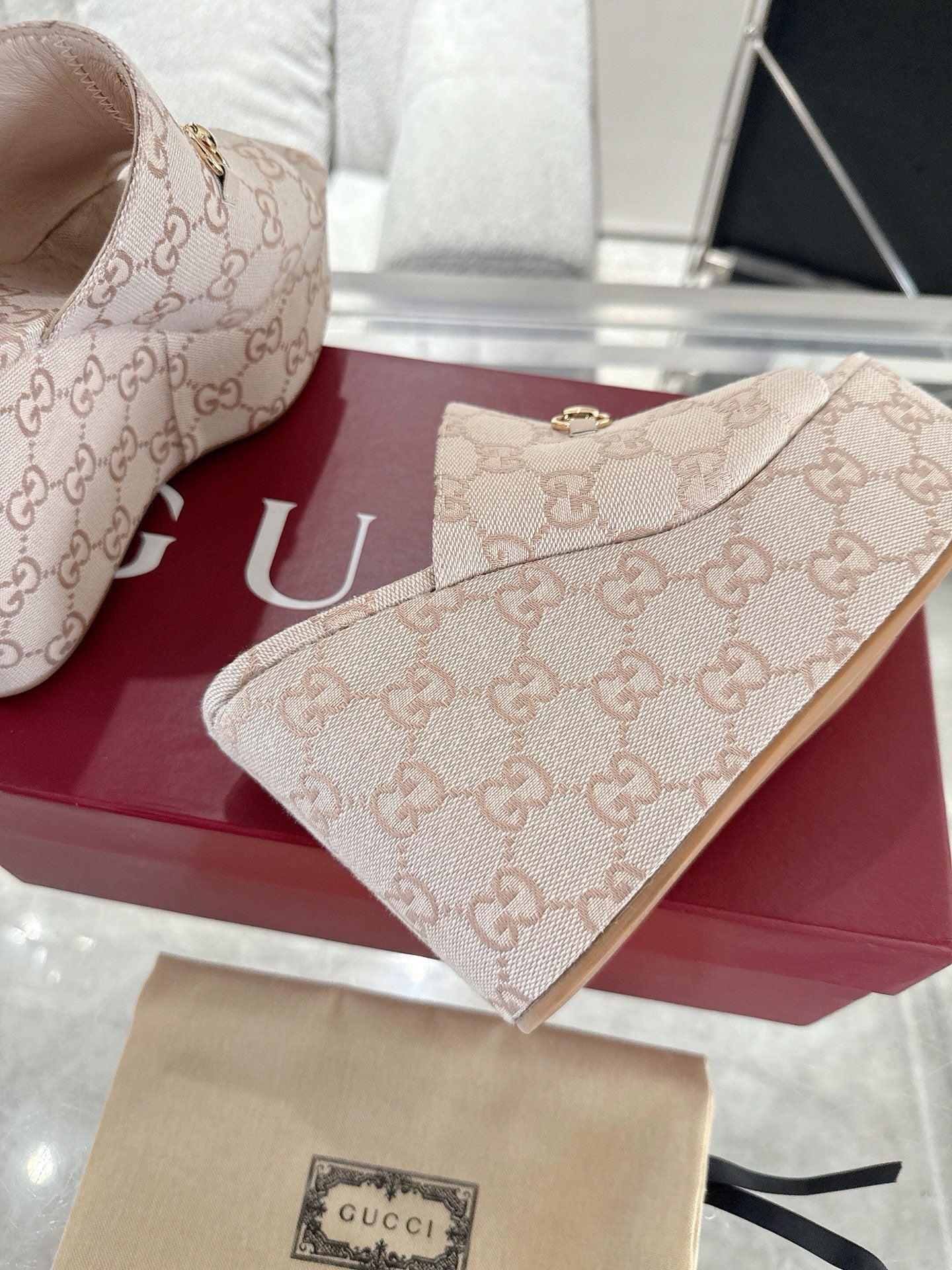 GC Wedge With Horsebit Sandal Beige Canvas 292423