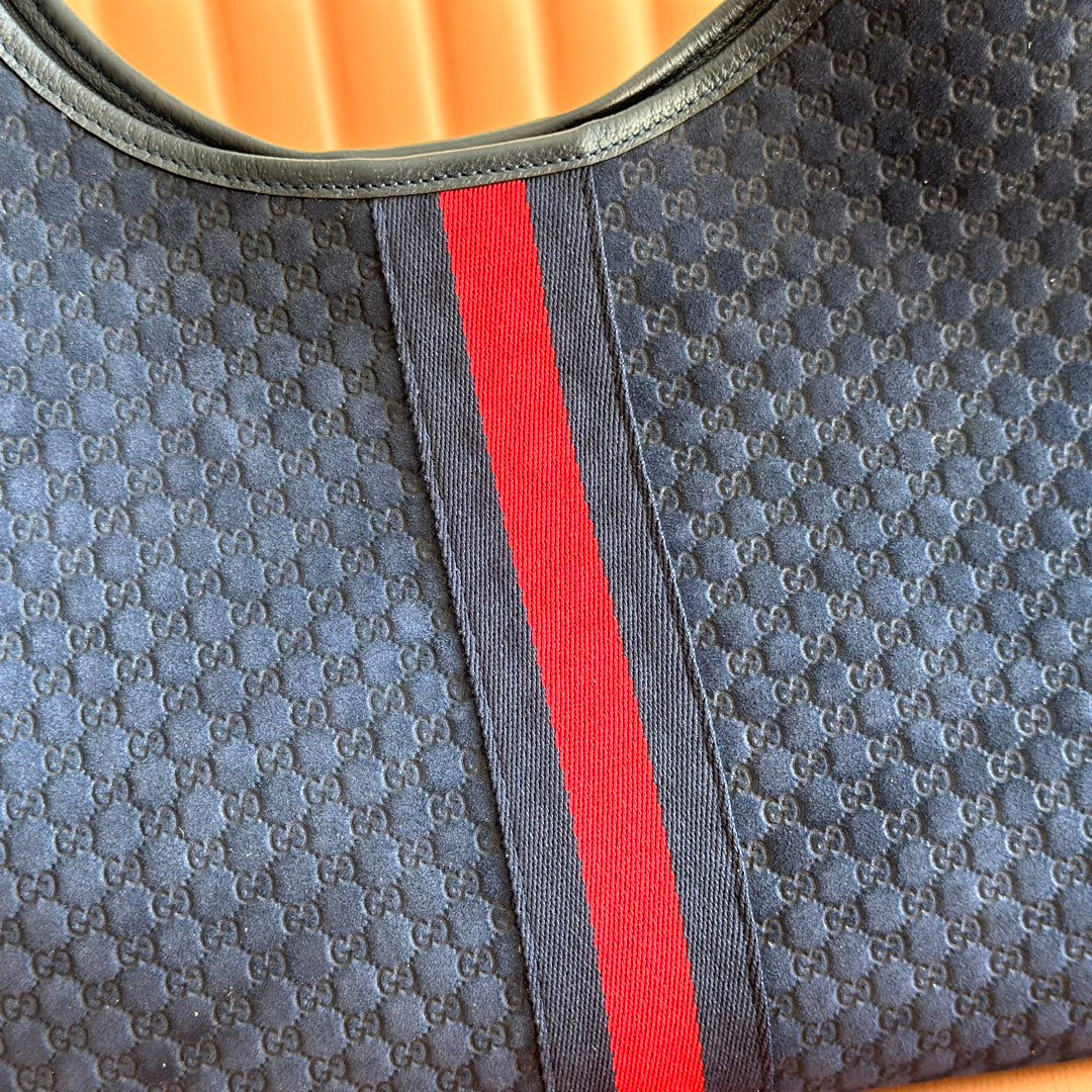 GG 2025 Giglio Large Tote Bag 60cm Dark Blue Red Suede Canvas 273276