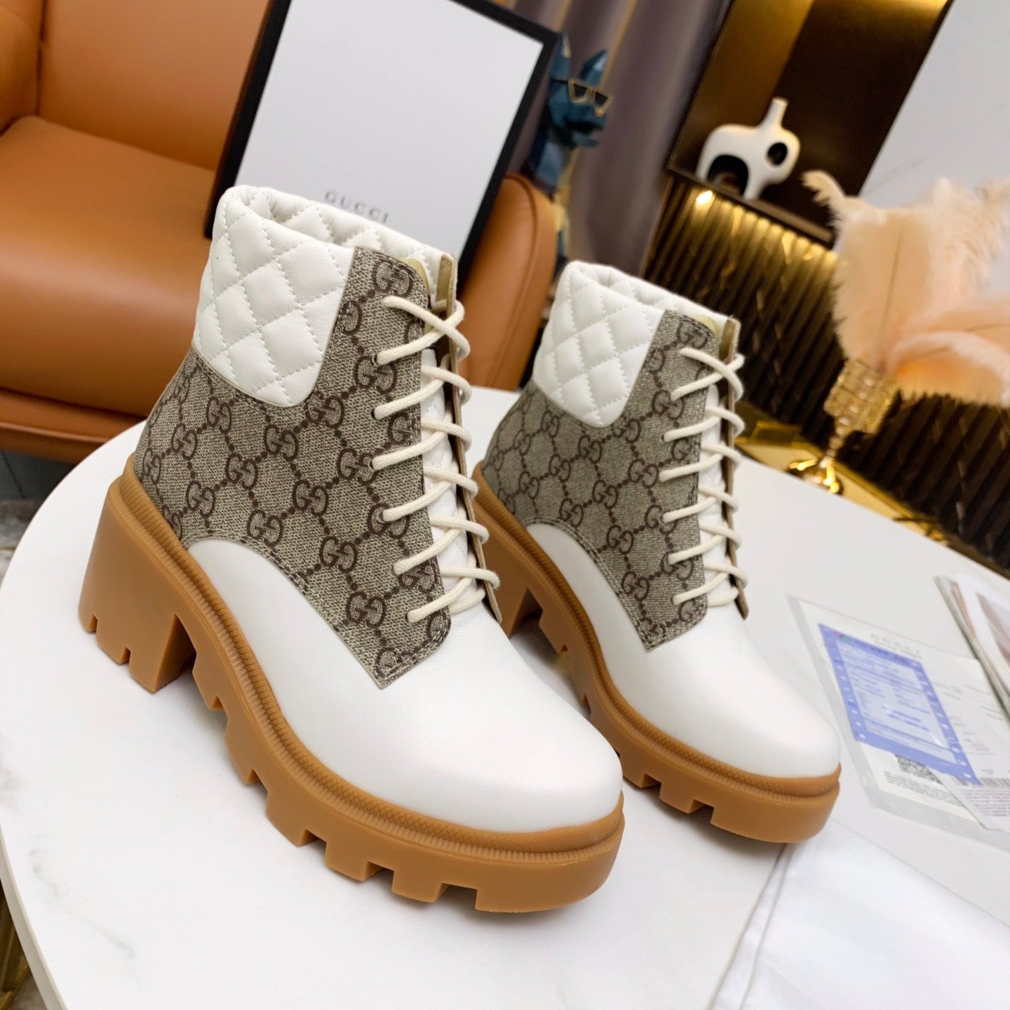 GG ankle boots white brown monogram canvas leather