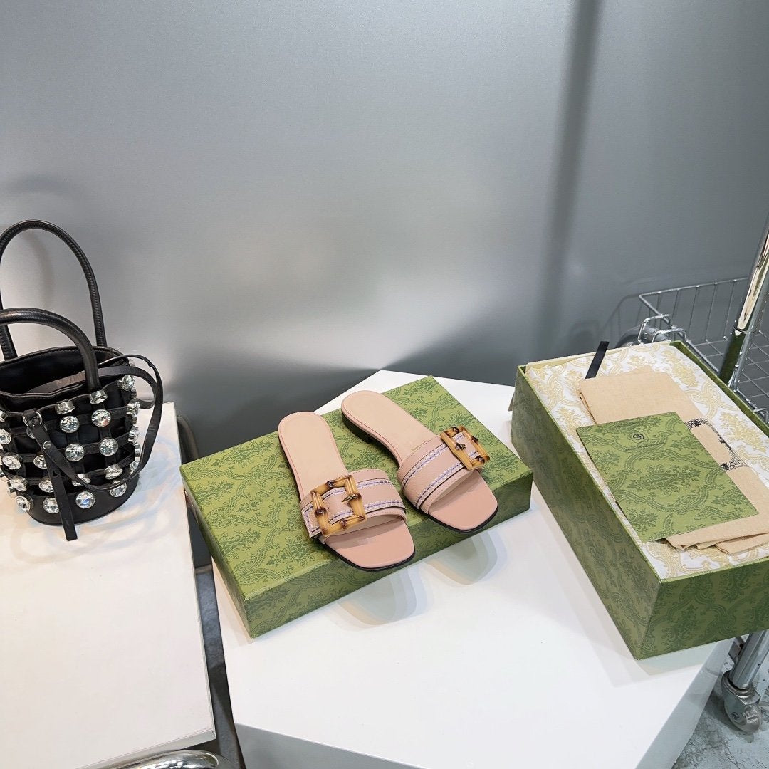 GG BAMBOO BUCKLE FLAT SANDALS BEIGE