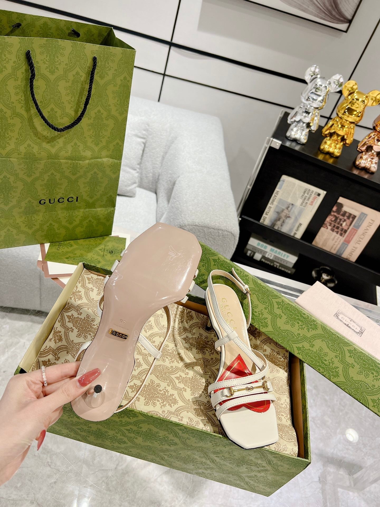 GG CLASSIC STRAPPY HEEL SANDAL WHITE CALFSKIN