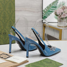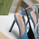 GG CRYSTAL HIGH HEEL SANDAL CERULEAN LAMBSKIN