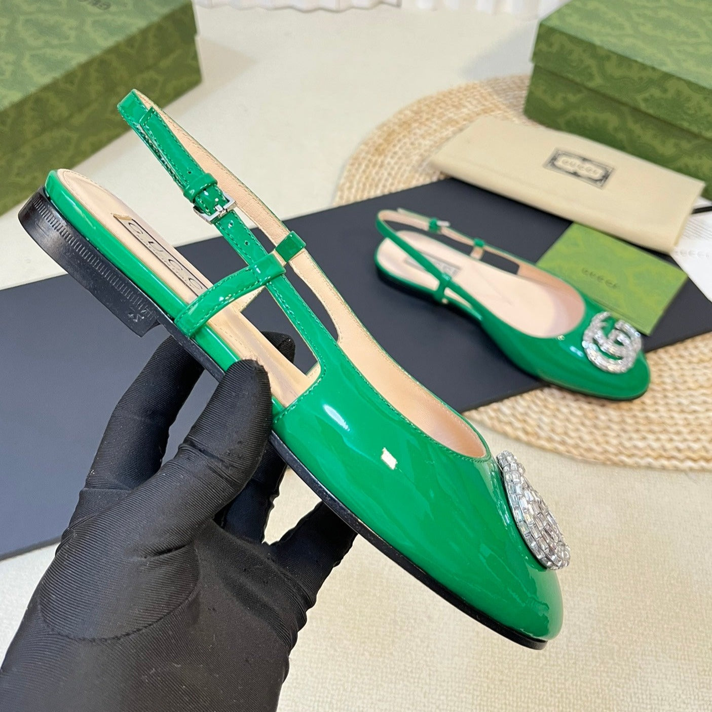 GG Double G patent leather slingback ballet flats Glossy Forest Green