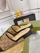 GG EXCLUSIVE SLIDE SANDAL BLACK AND BROWN FABRIC