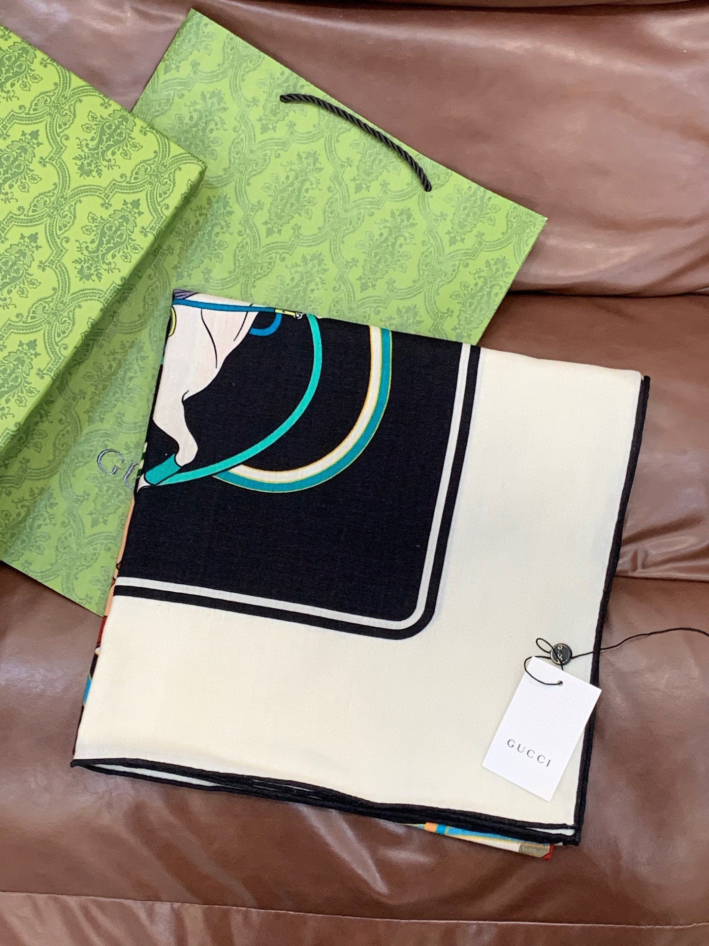 GG Horsebit 135CM Black Colorful Cashmere Silk 275259