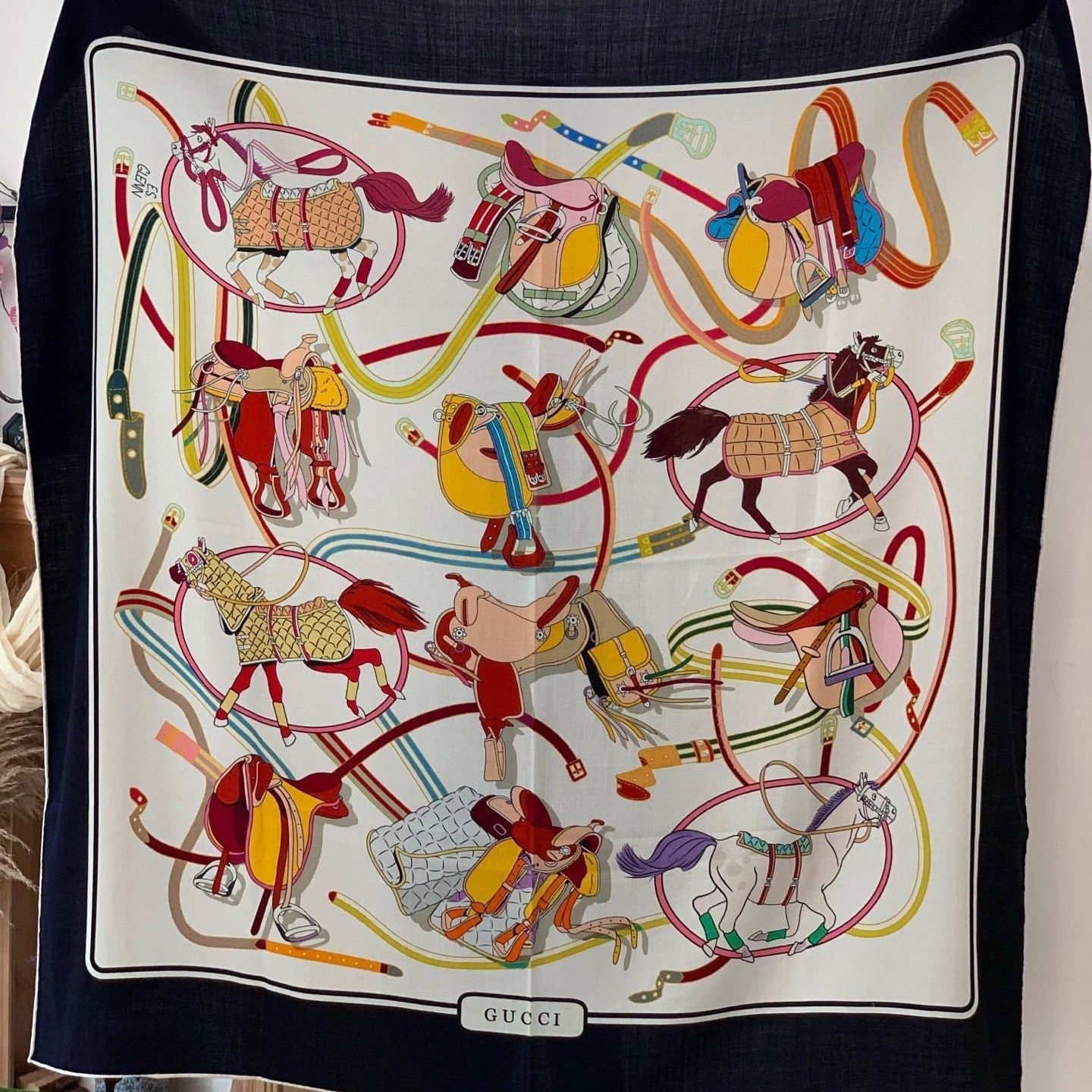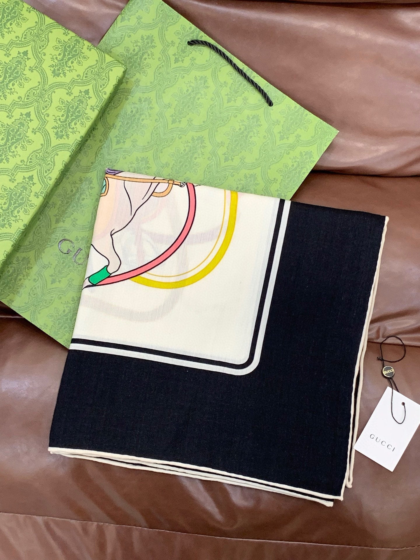 GG Horsebit 135CM White Black Cashmere Silk 275260
