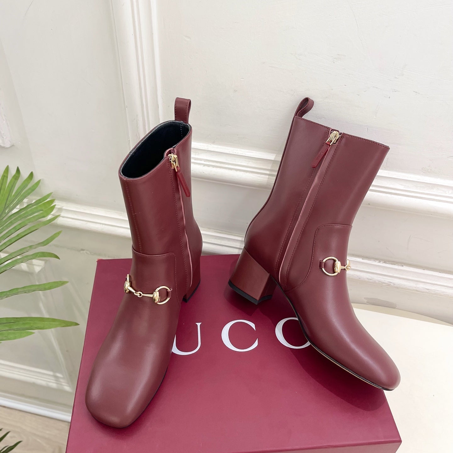 GG horsebit chunky heel ankle boots burrgundy calfskin 536060