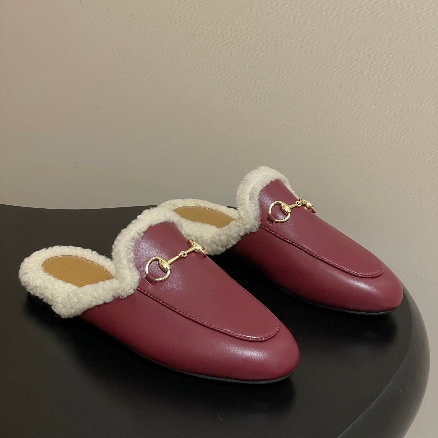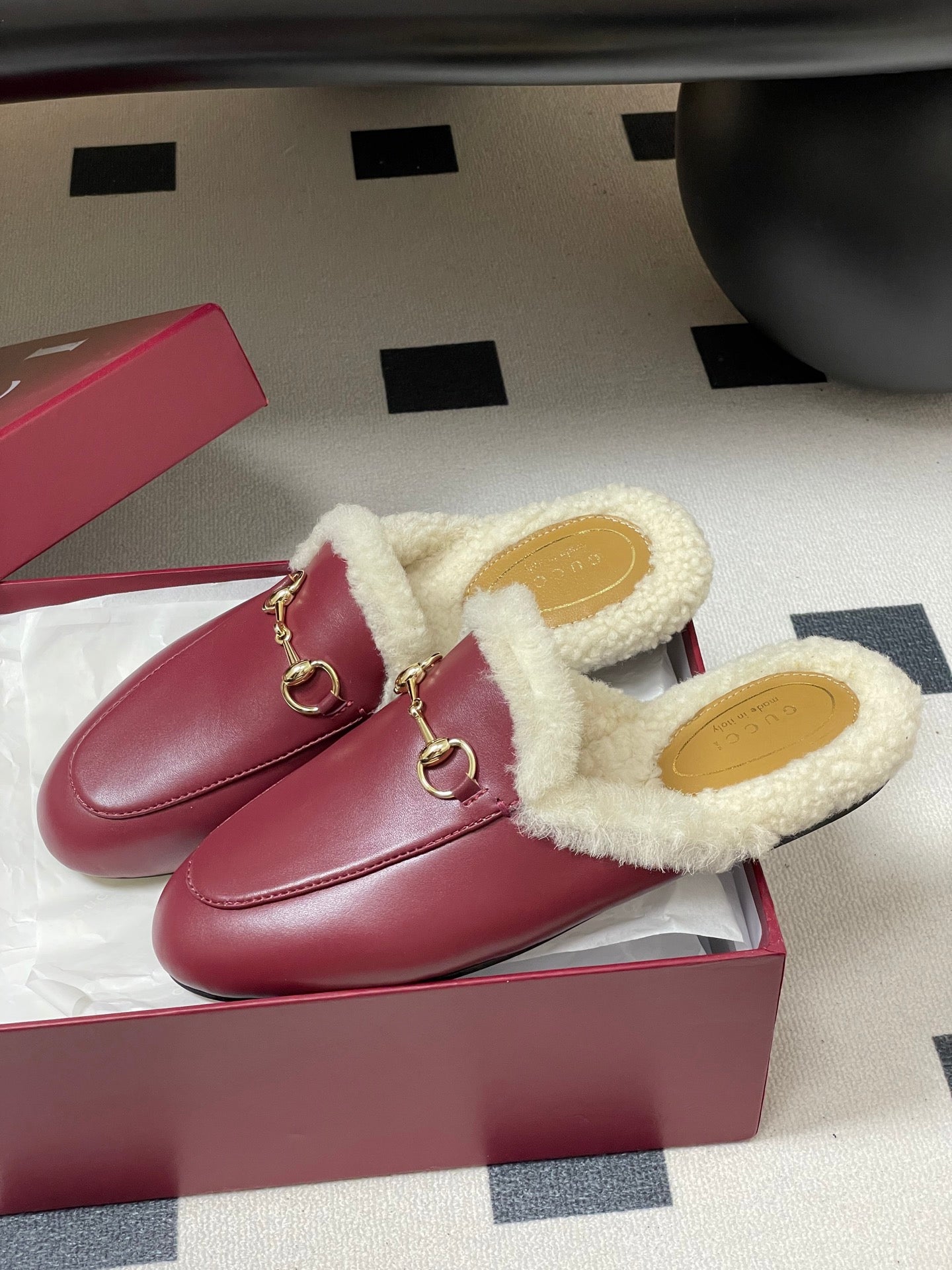 GG horsebit flat mules red cowhide 534711
