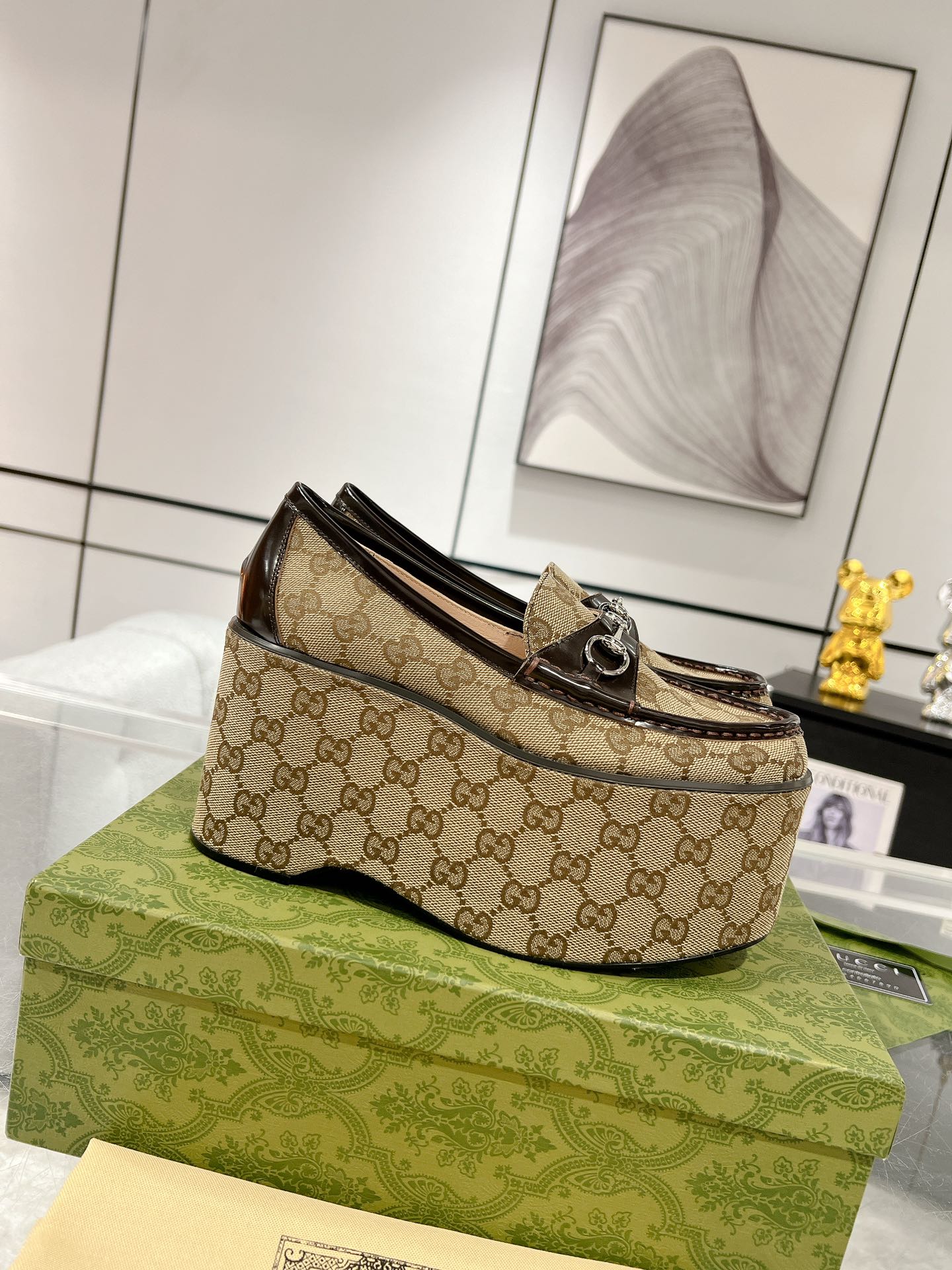 GG HORSEBIT PLATFORM LOAFER LIGHT BROWN CALFSKIN