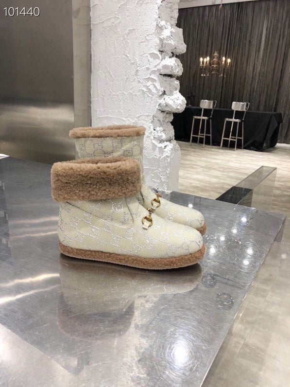 GG Horsebit Snow Cream Brown Woolen Fabric Fleece 576255