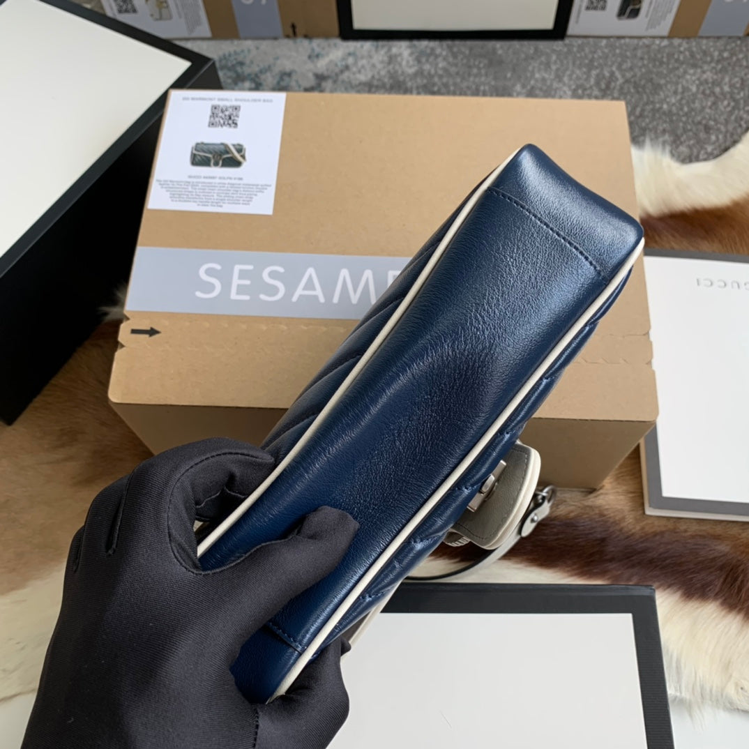 GG MARMONT MEDIUM 26 HANDBAG IN MIDNIGHT BLUE CALFSKIN