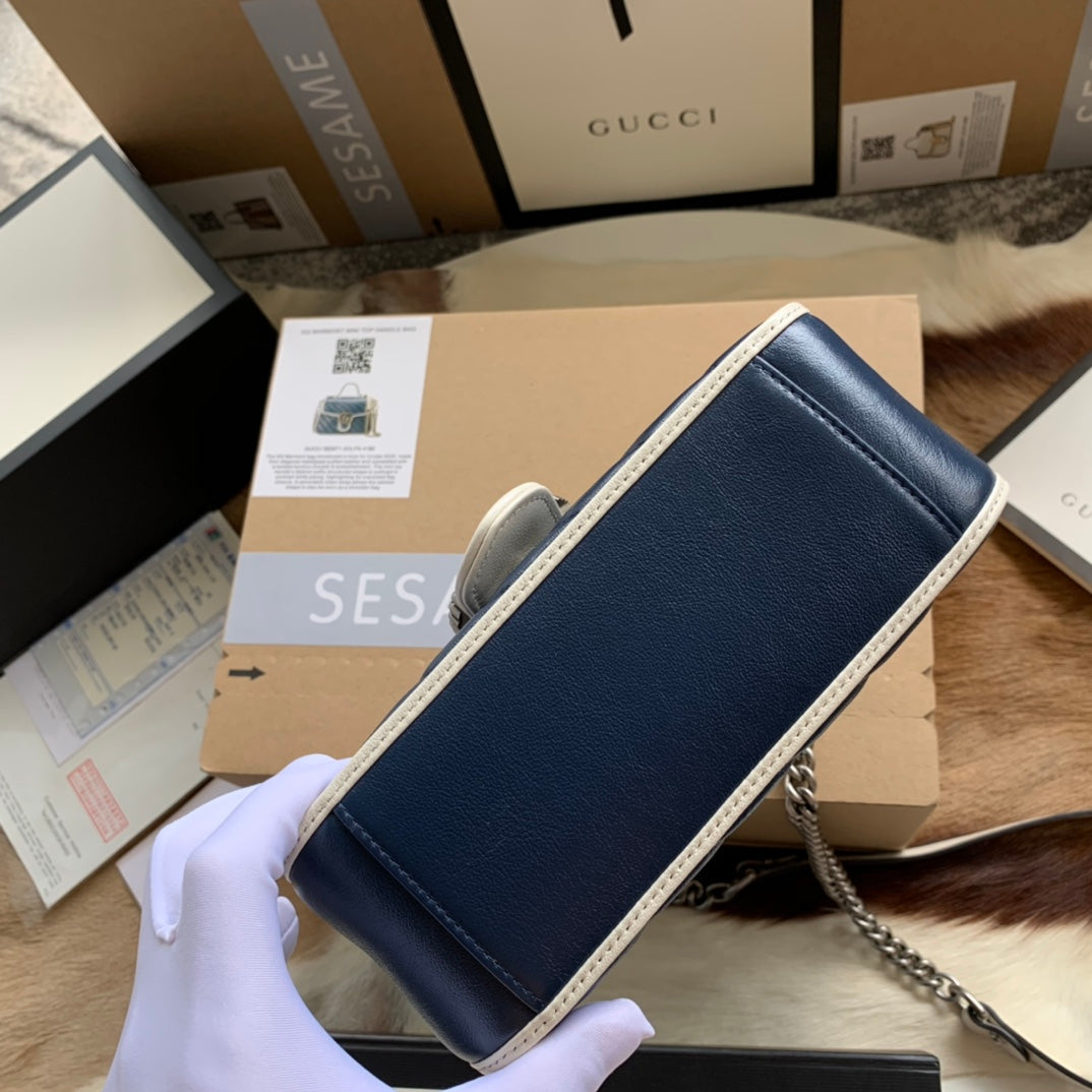 GG MARMONT MINI 21 HANDBAG IN MIDNIGHT BLUE CALFSKIN