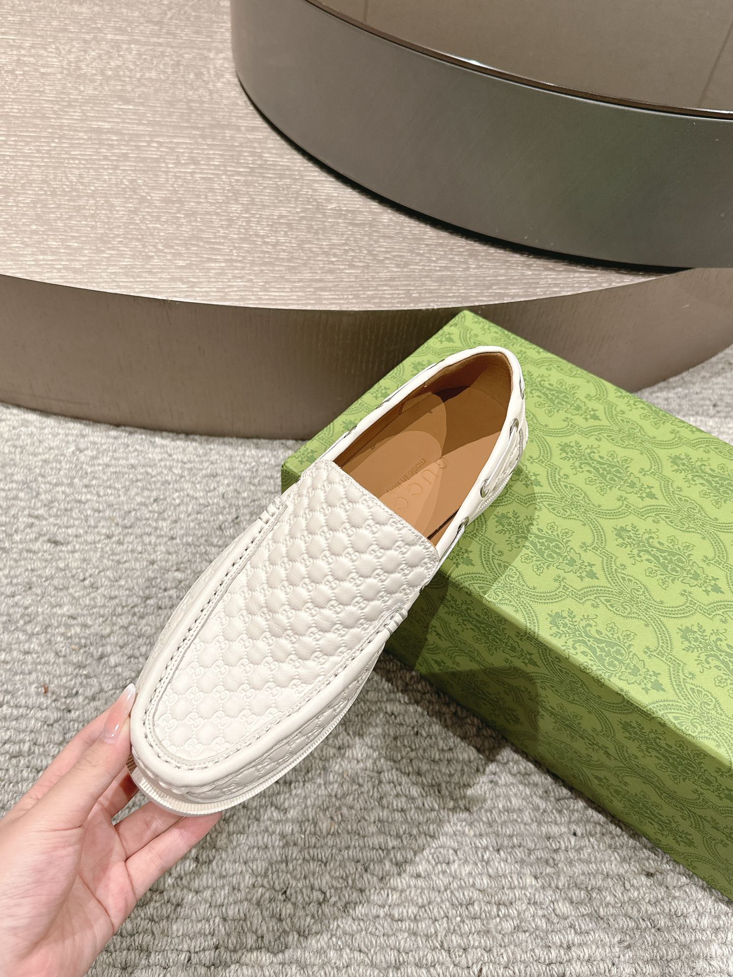 GG Men's 25 Loafer White Calfskin 592174