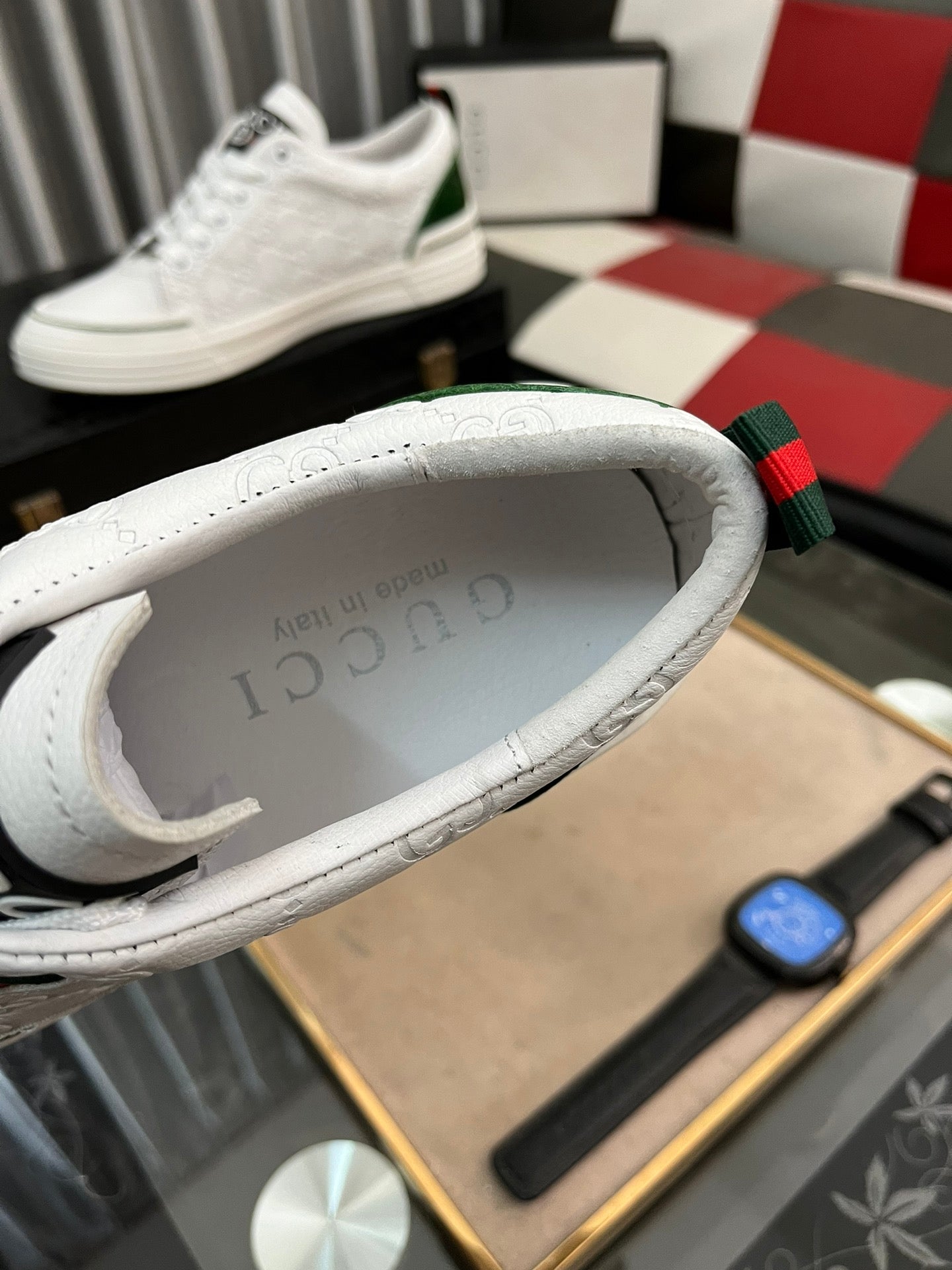 GG Men's ACE Sneaker White Green Embossed Cowhide 543293