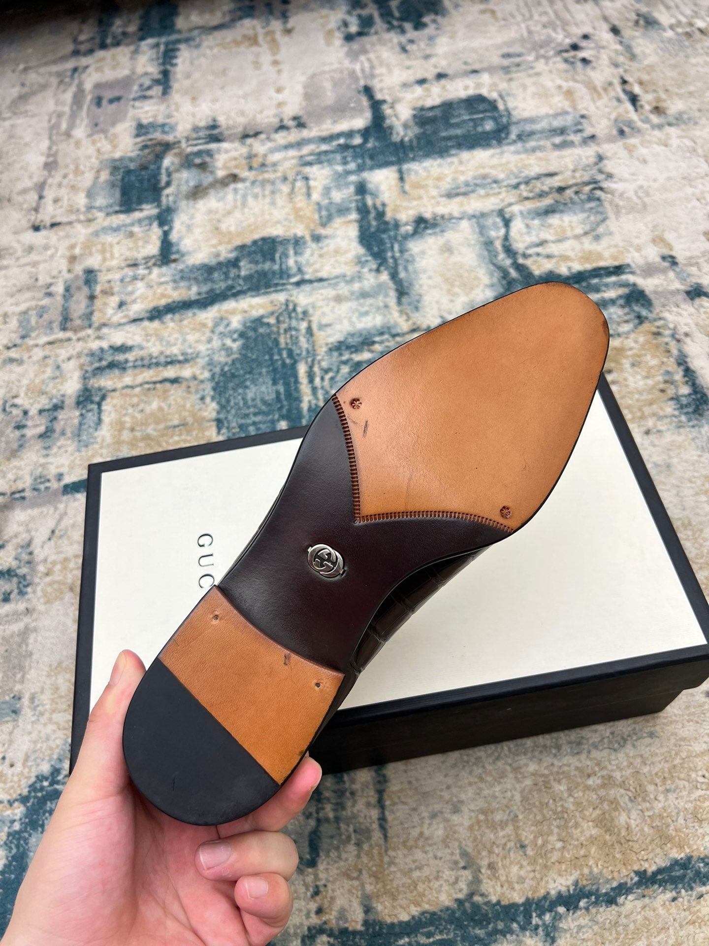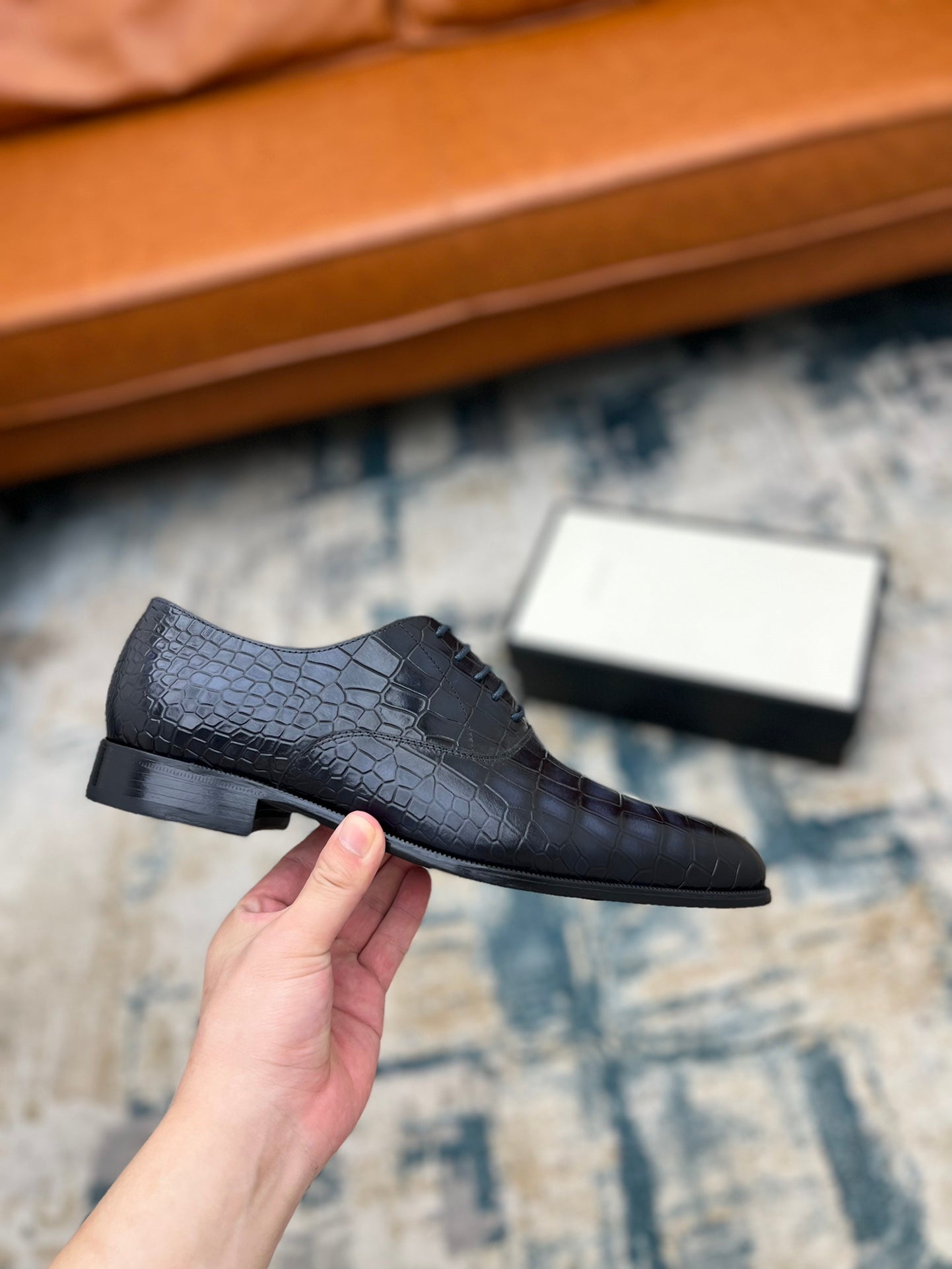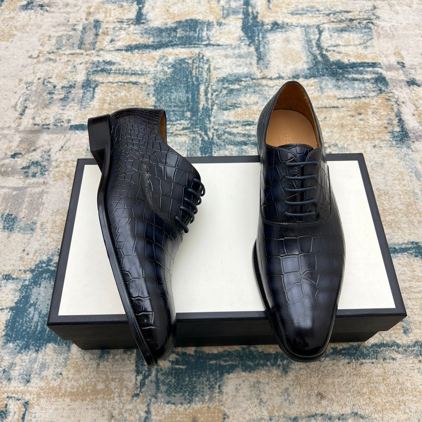 GG Men's Dress Shoe Blue Crocodile Embossed Calfskin 533107