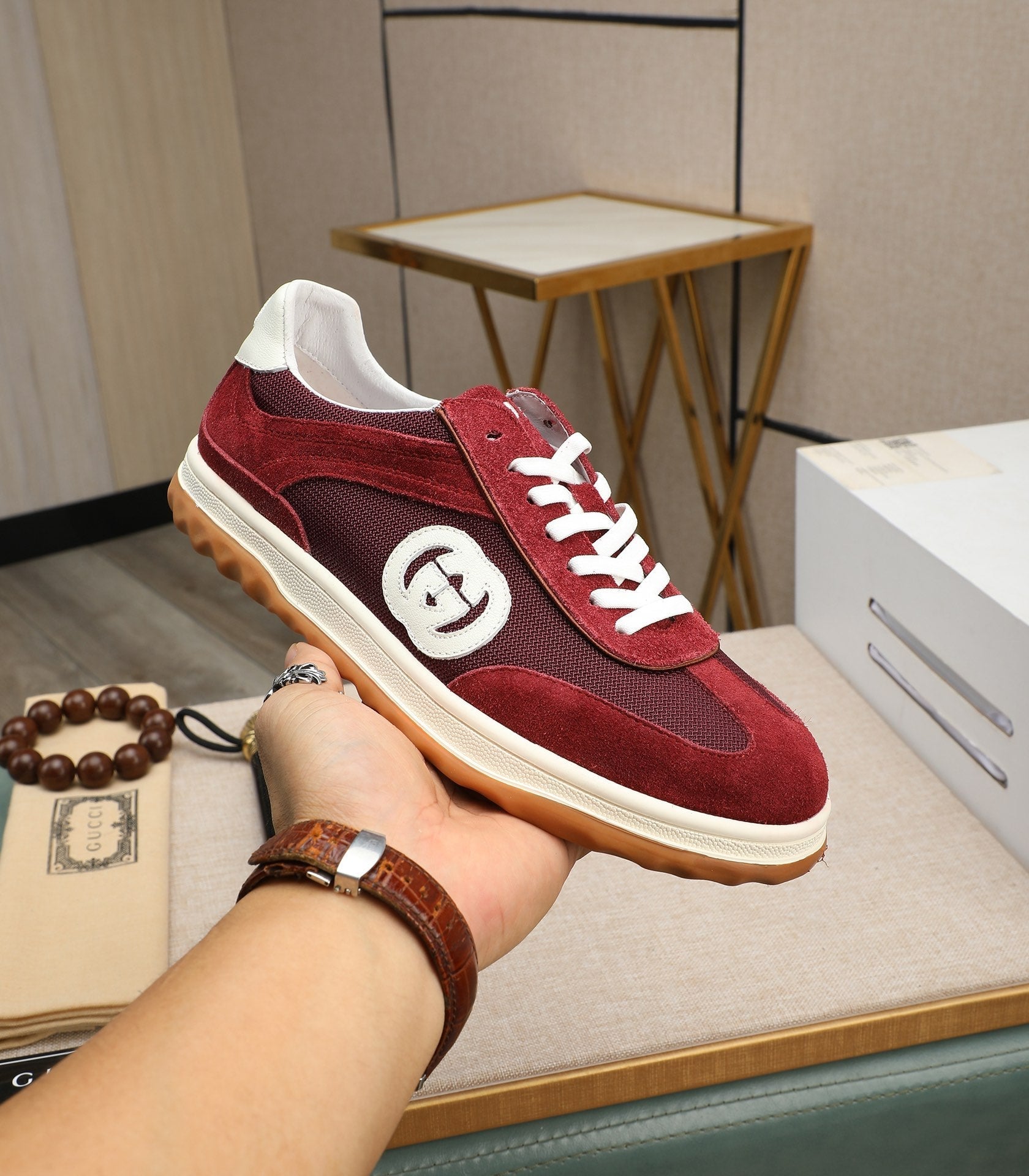 GG Men's G75 Sneaker Red Mesh Suede 270521