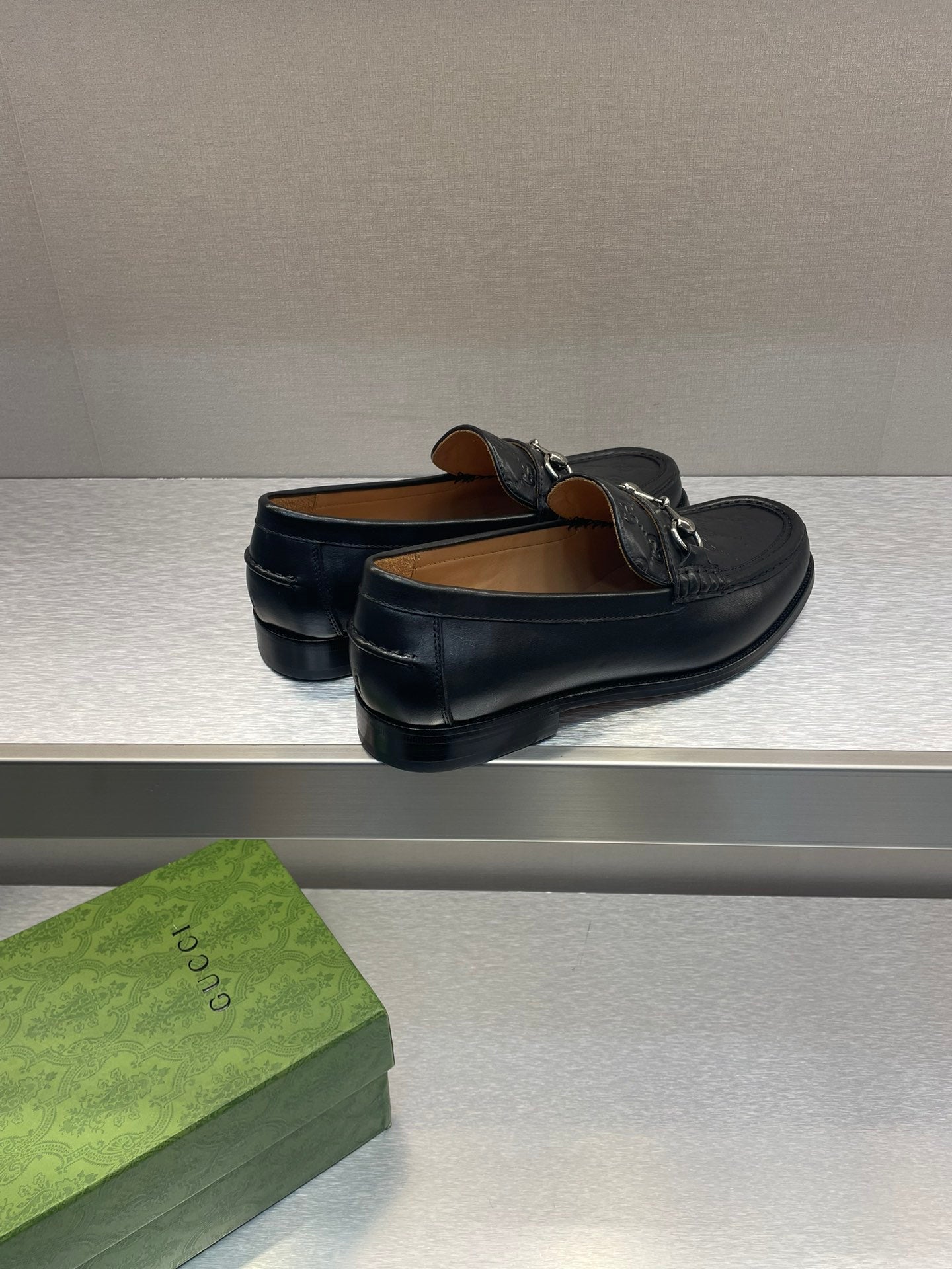 GG Men's Horsebit Loafer Black Embossed Cowhide 542447
